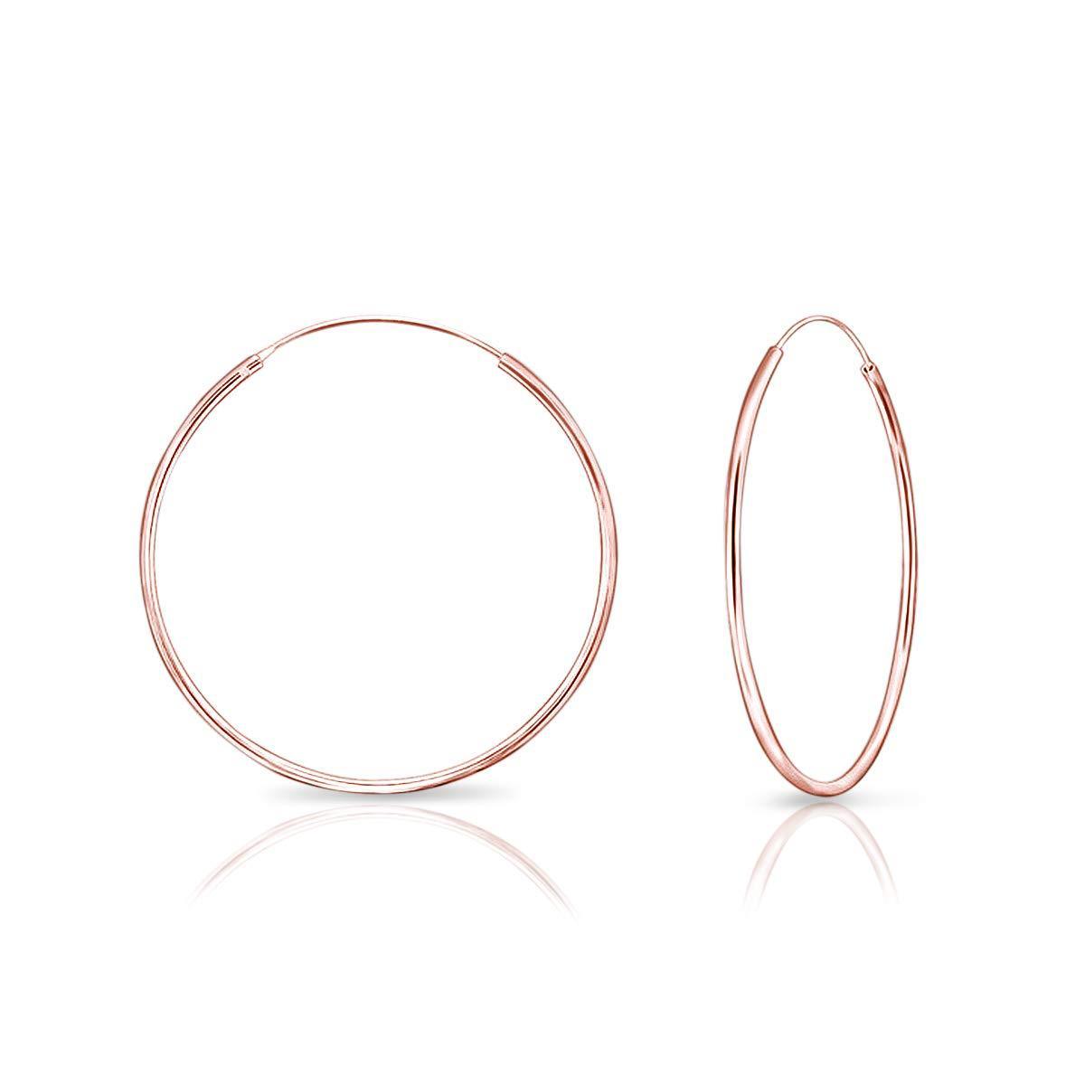 DTPsilver® 925 Sterling Silver Rose Gold plated TINY/SMALL/MEDIUM/LARGE Hoops/Sleepers Earrings - Thickness 1.5 mm - Diameter 8, 10, 12, 14, 16, 18, 20, 25, 30, 35, 40, 50, 60, 70, 80 mm 40 mm