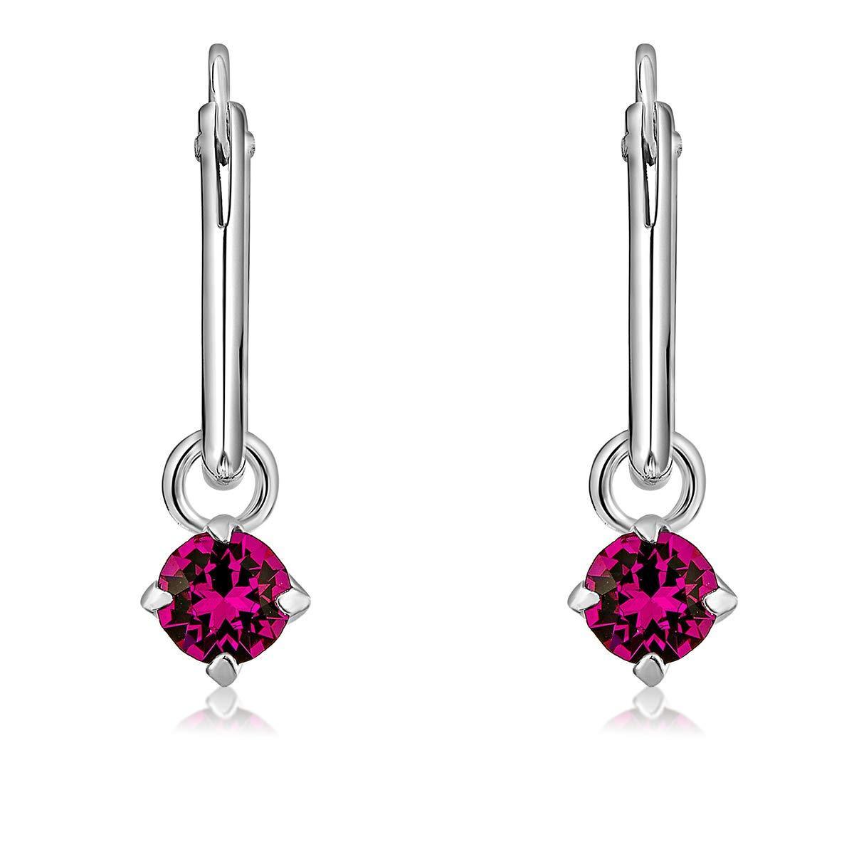 DTPsilver® 925 Sterling Silver SMALL Hoops Earrings & Round Dangling 3 mm Glittering Crystals from Swarovski® Elements - Thickness 1.2 mm - Diameter: 12 mm - Many Colours to choose from Fuchsia