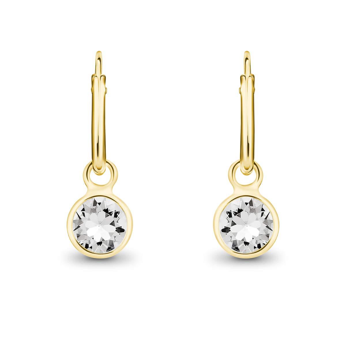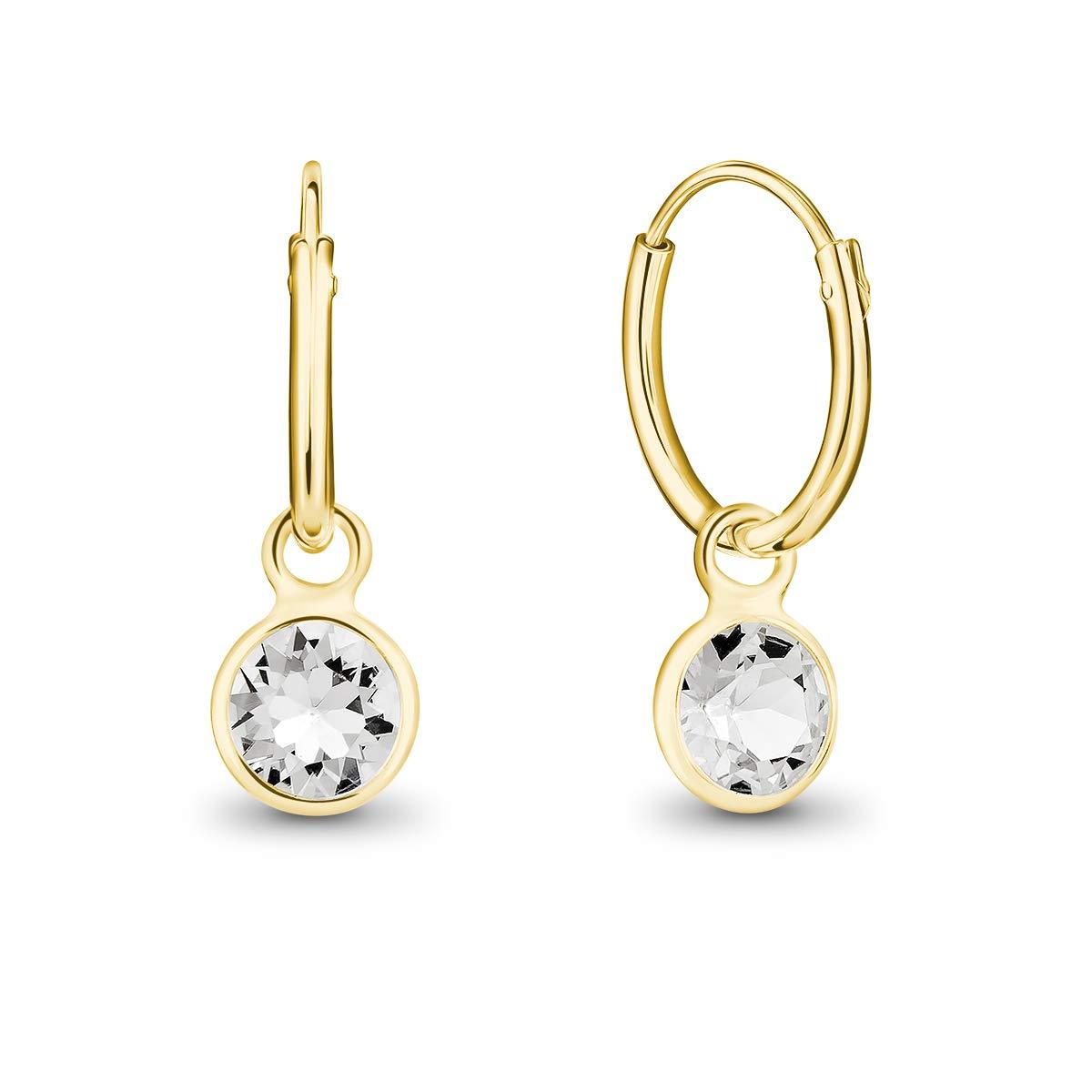 DTPsilver® 925 Sterling Silver Yellow Gold Plated SMALL Hoops Earrings - Dangling 5 mm Round Glittering Crystals from Swarovski® Elements - Diameter 12 mm - Many Colours to choose from White Crystal