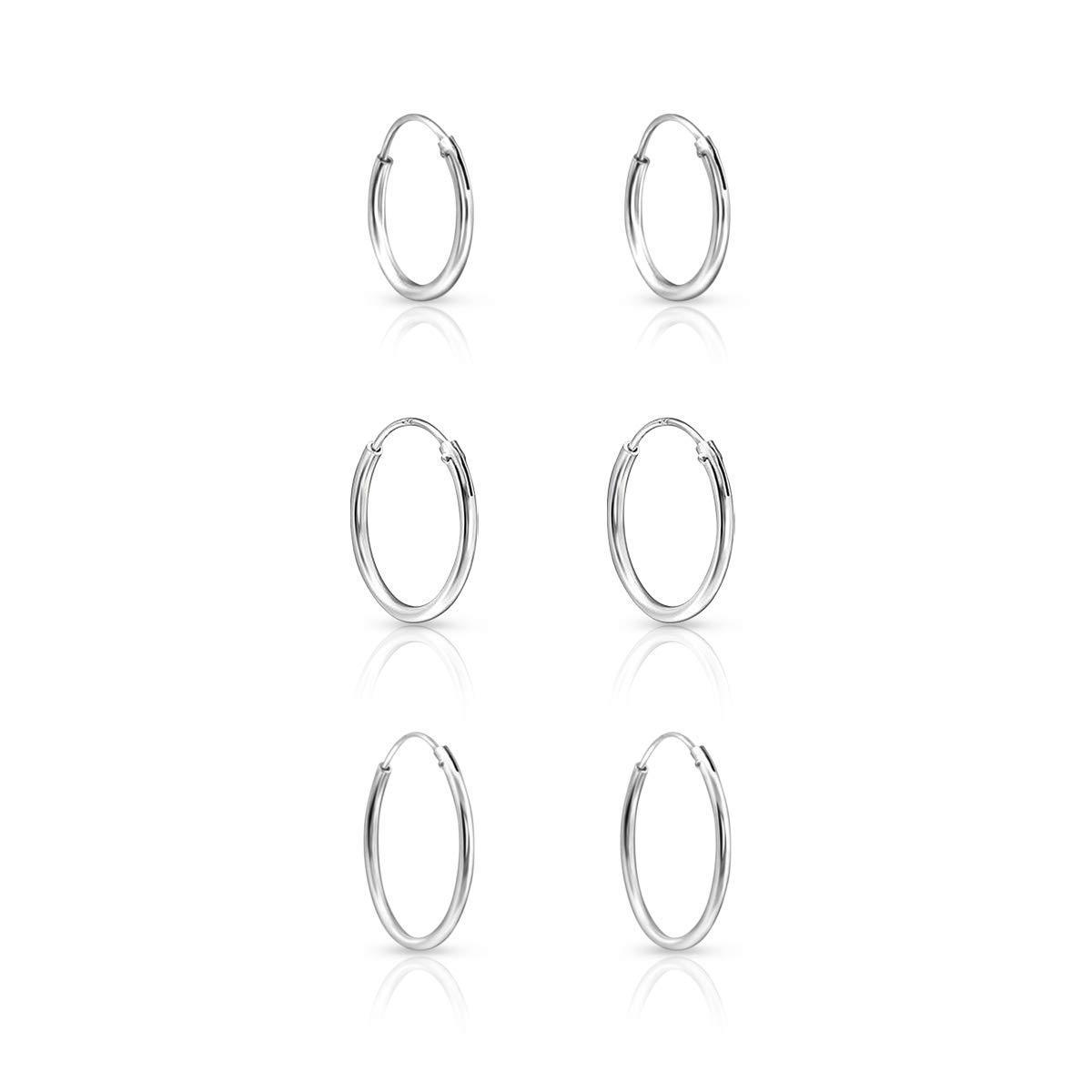 DTPsilver® Set of 3 PAIRS of SMALL/MEDIUM 925 Sterling Silver, Yellow Gold or Rose Gold Plated Endless Hoops/Sleepers Earrings - Thickness 1.5 mm - Mixed Sizes - Outer Diameter: 12, 14, 16, 18, 20 mm 3 Pairs 14/16/18 Mm Silver