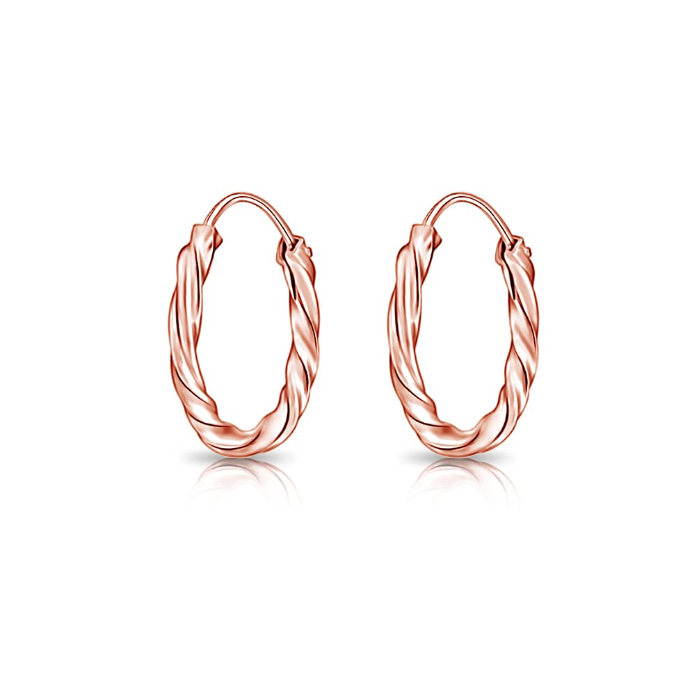 DTPSilver - 925 Sterling Silver Rose Gold Plated Tiny / Small / Medium / Large size Twisted Hoops / Sleepers Earrings - Thickness 1.8 mm - Diameter 10, 12, 14, 16, 18, 20, 30, 40, 50 mm
