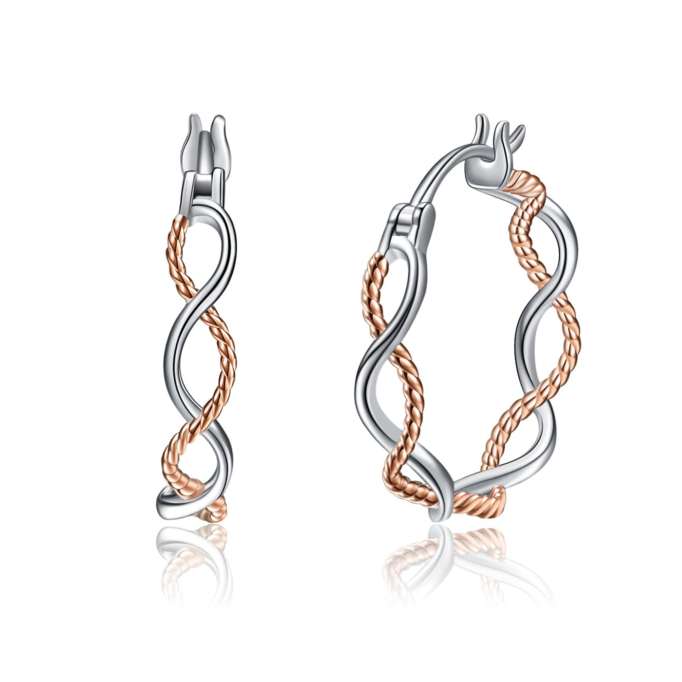 Hoop Earrings Sterling Silver Endless Circle Earrings Hoops Jewellery for Women Girls Rose gold rope