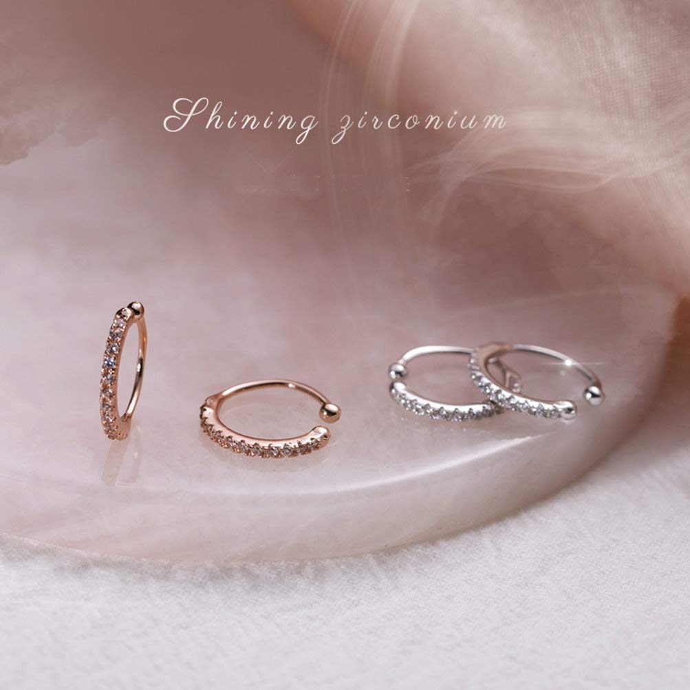 Huggie Cuff Clip On Cubic Zirconia 925 Sterling Silver Small Hoop Earrings for Women Teen Girls Cartilage Fashion Wrap No Piercing Ear Hypoallergenic