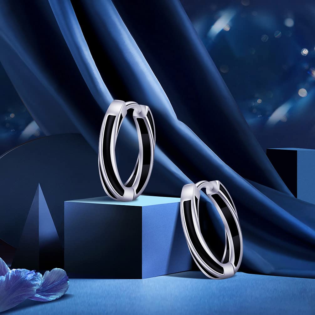 Immobird Mens Earrings Black Twisted Small Hoop Earrings 925 Sterling Silver Hoop Earrings for Women 11mm