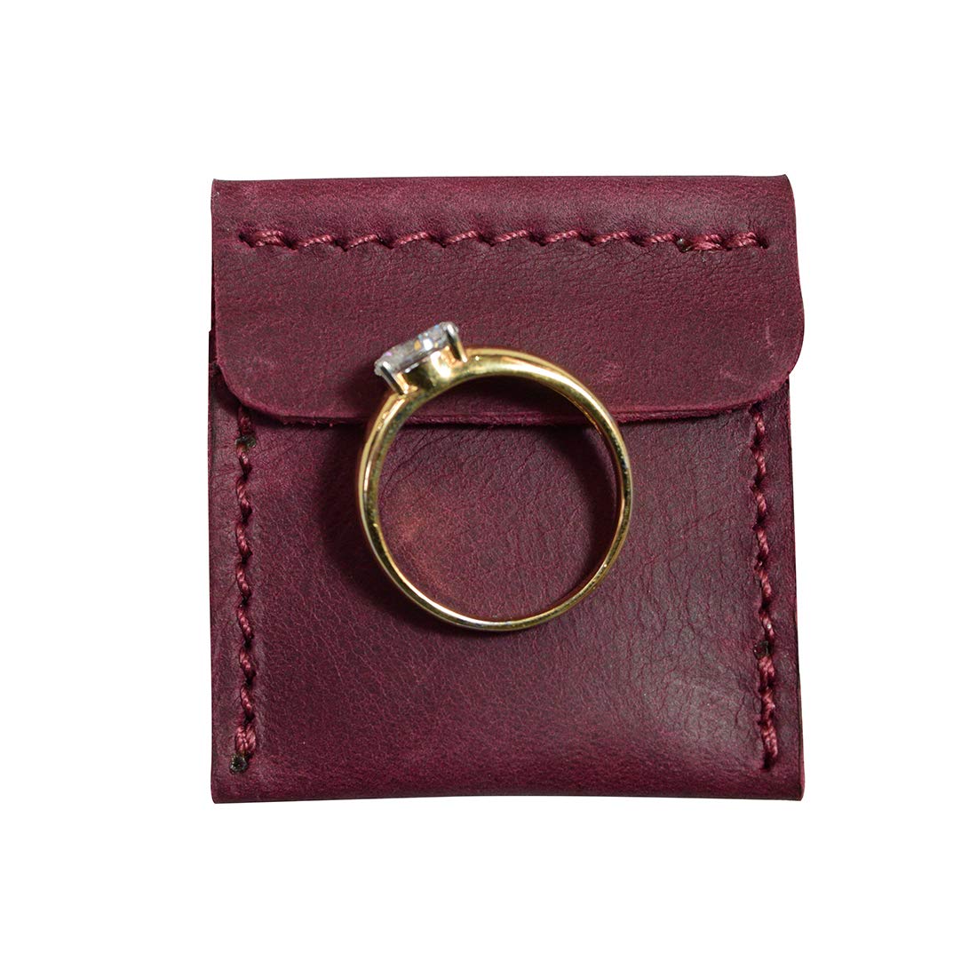 Hide & Drink, Leather Wedding Ring Case, Slim Engagement Pouch, Marriage, Cute Gifts, Handmade - Sangria