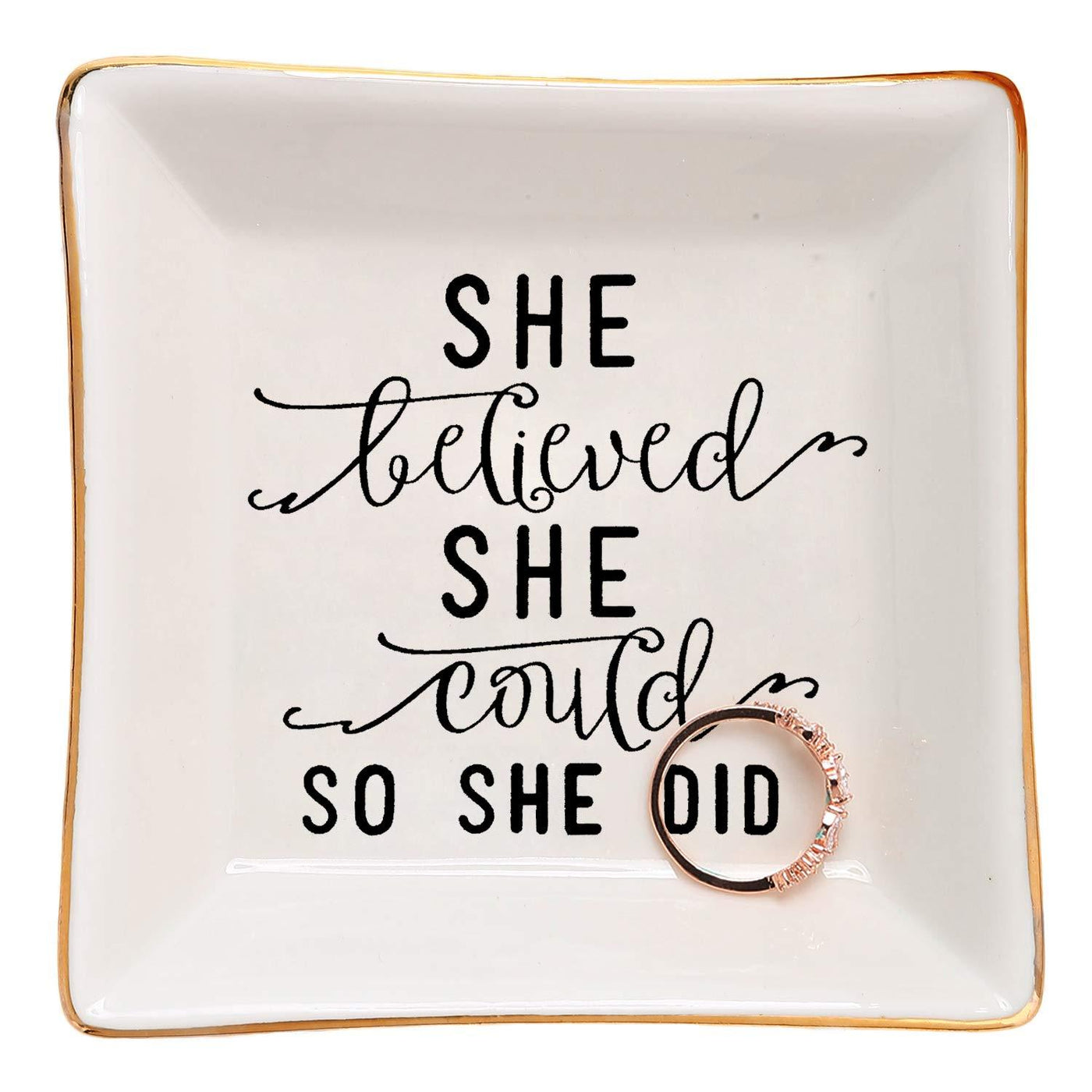 HOME SMILE Inspirational Birthday for Women Female Friends Ring Trinket Dish-She Believed She Could,So She Did
