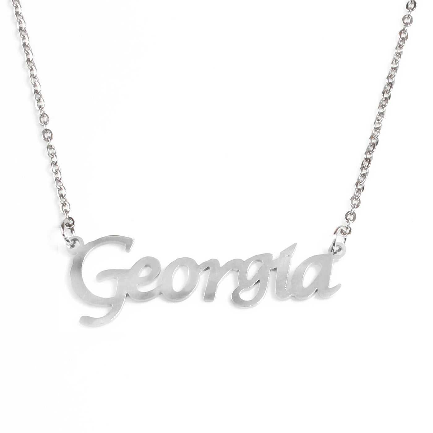 Kigu Georgia Personalized Name - Silver Tone Necklace - Adjustable Chain 16" - 19" Packaging