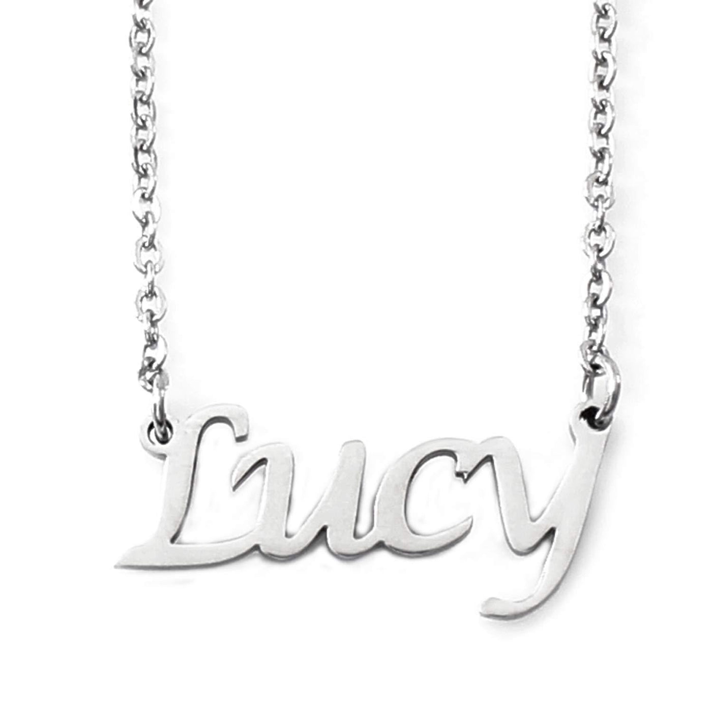 Kigu Lucy Personalised Name - Silver Tone Necklace - Adjustable Chain 16" - 19" - Incl Gift Packaging