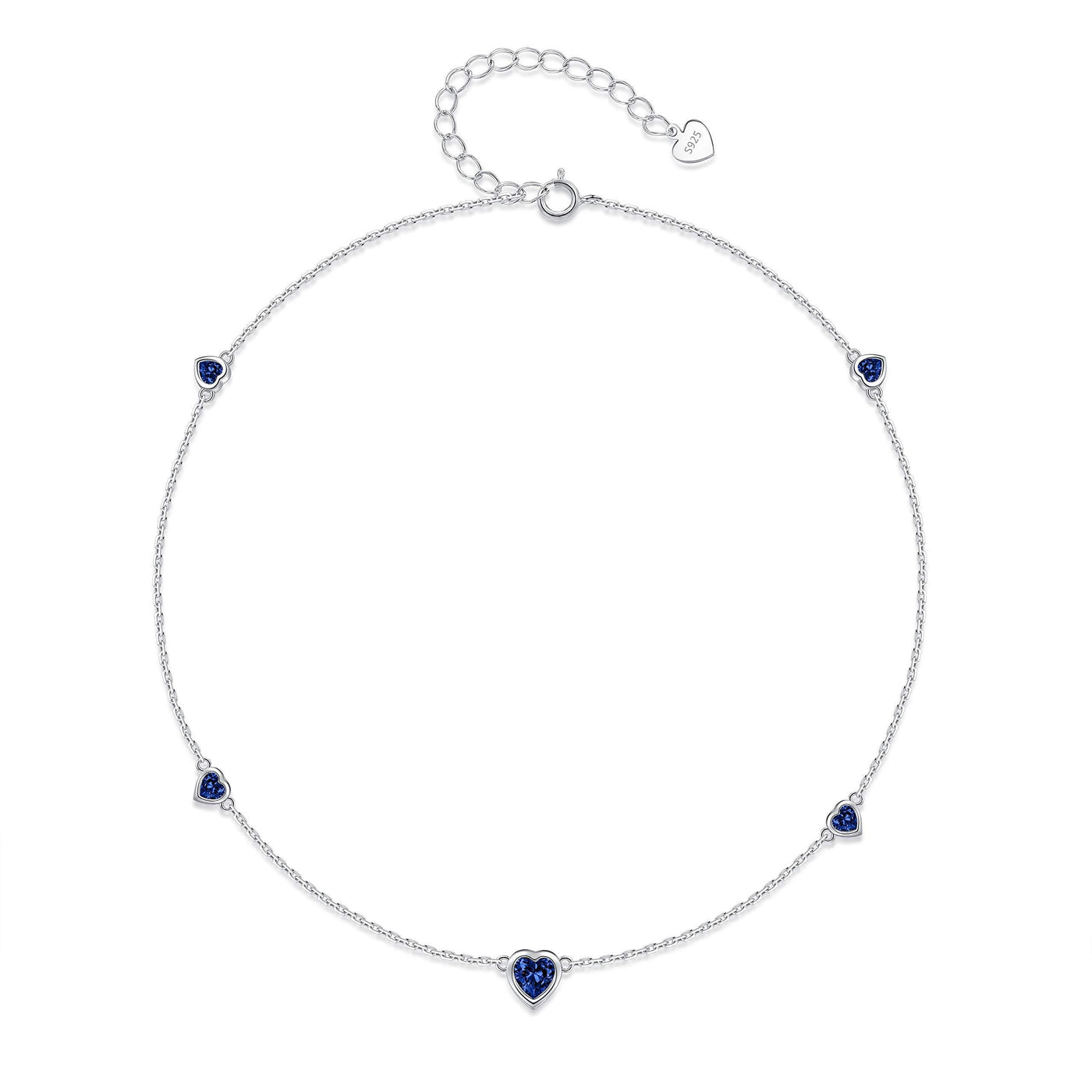 Step Forward Birthstone Heart Jewelry Sterling Silver - Anklet & Choker Necklace Gift Jewelry for Women or Teen Girls or Daughter September