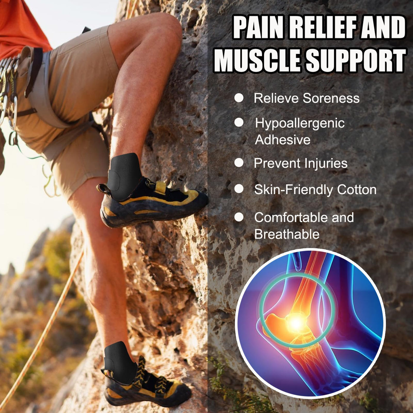 - Skin-friendly & Breathable: Experience durable pain relief with our athletic ankle tape! Its wave-shaped adhesive effectively reduces swelling from plantar fasciitis or sprains, offering strong ligament support. Breathable, waterproof, and skin-friendly cotton for all-day comfort during workouts or standing