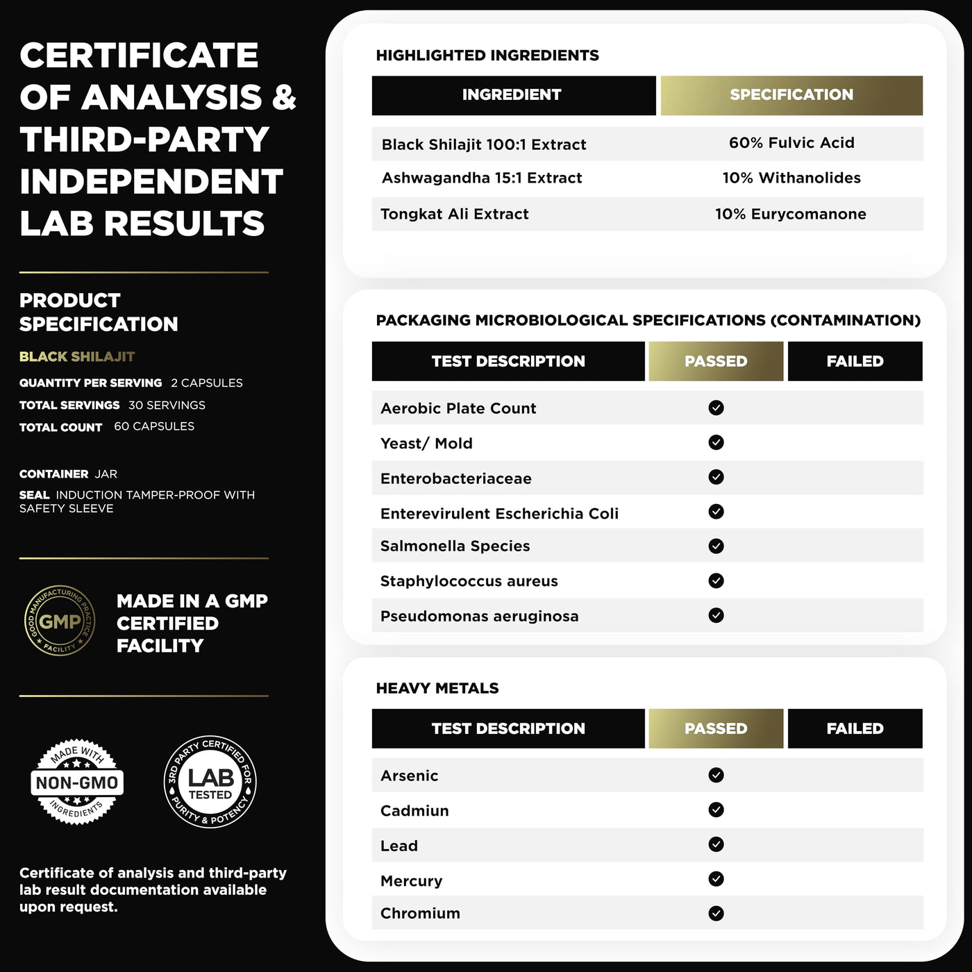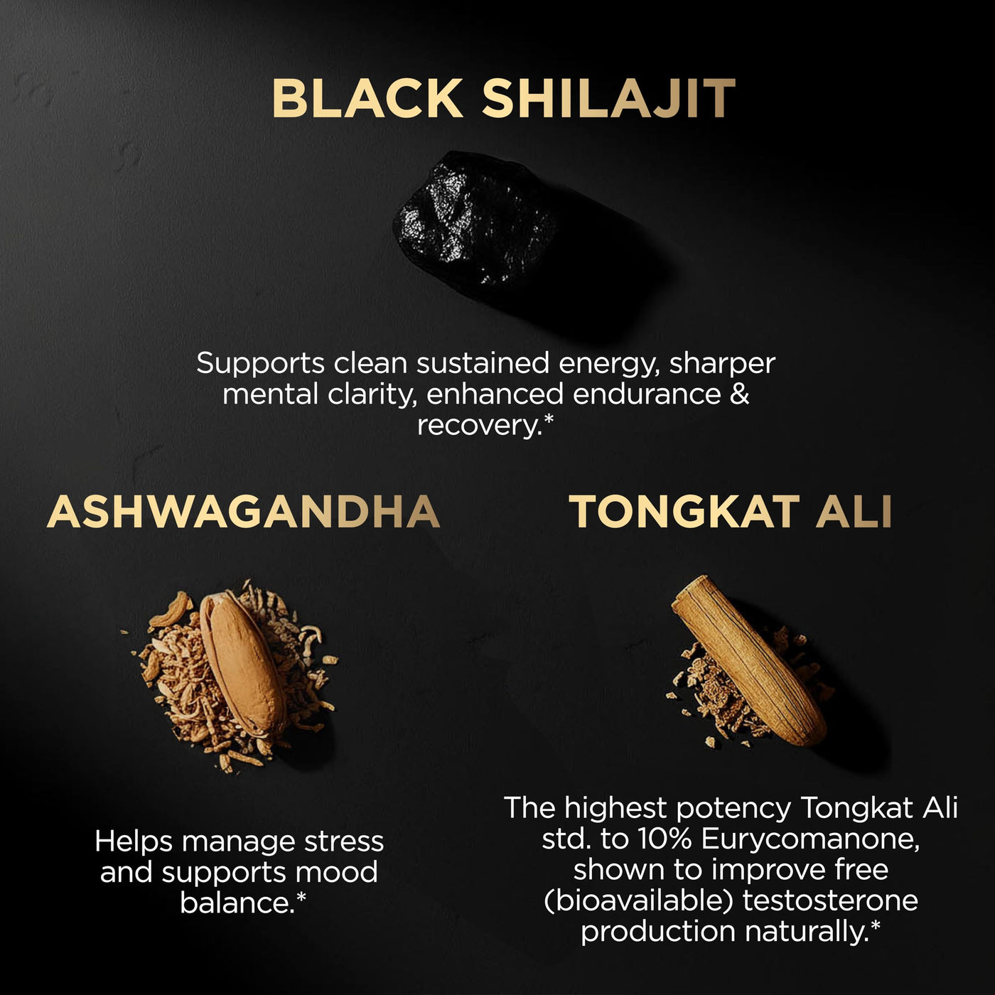 BLACK SHILAJIT + ASHWAGANDHA + TONGKAT ALI | 103,800MG CONCENTRATED EXTRACT FORMULA:Black Shilajit 100:1 Extract (60% Fulvic Acid) – 1,000mg(comparable to 100,000mg standard shilajit powder)Ashwagandha 15:1 Extract (std. to 10% Withanolides) – 250mg(comparable to 3,750mg standard ashwagandha powder)Tongkat Ali Extract (std. to 10% Eurycomanone) – 50mg(comparable to 600-3,000mg standard tongkat ali powder) (Also searched as: black thai honey for men, better al shilajit sea moss tongkat ali ashwagandha, male supplements para hombres, pure himalayan shilajit resin, gold shilajit gummies for men, mens health supplements, king maker supplement for men, shilajit energy drink, shilajit for women, chilajil para hombre 100 original, honey shilajit ashwagandha for men, energy booster for men, 10-in-1 masculinity maximizer, primave shilajit, shilajit capsules, purified shilajit tablets, himalaya she lajit, tongat-ali for men, himalayan shilajit gummies, fulvic acid supplement, shilajit organic, shilajit for men test, shilajit capsules for men, purified shilajit, natural shilajit, shilajit tablets, she lajit, mens supplements, energy pills for men, men's health, body building supplements men)