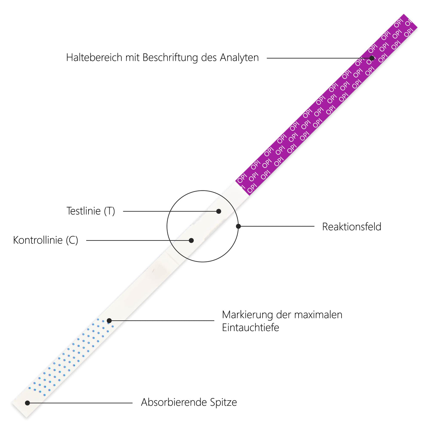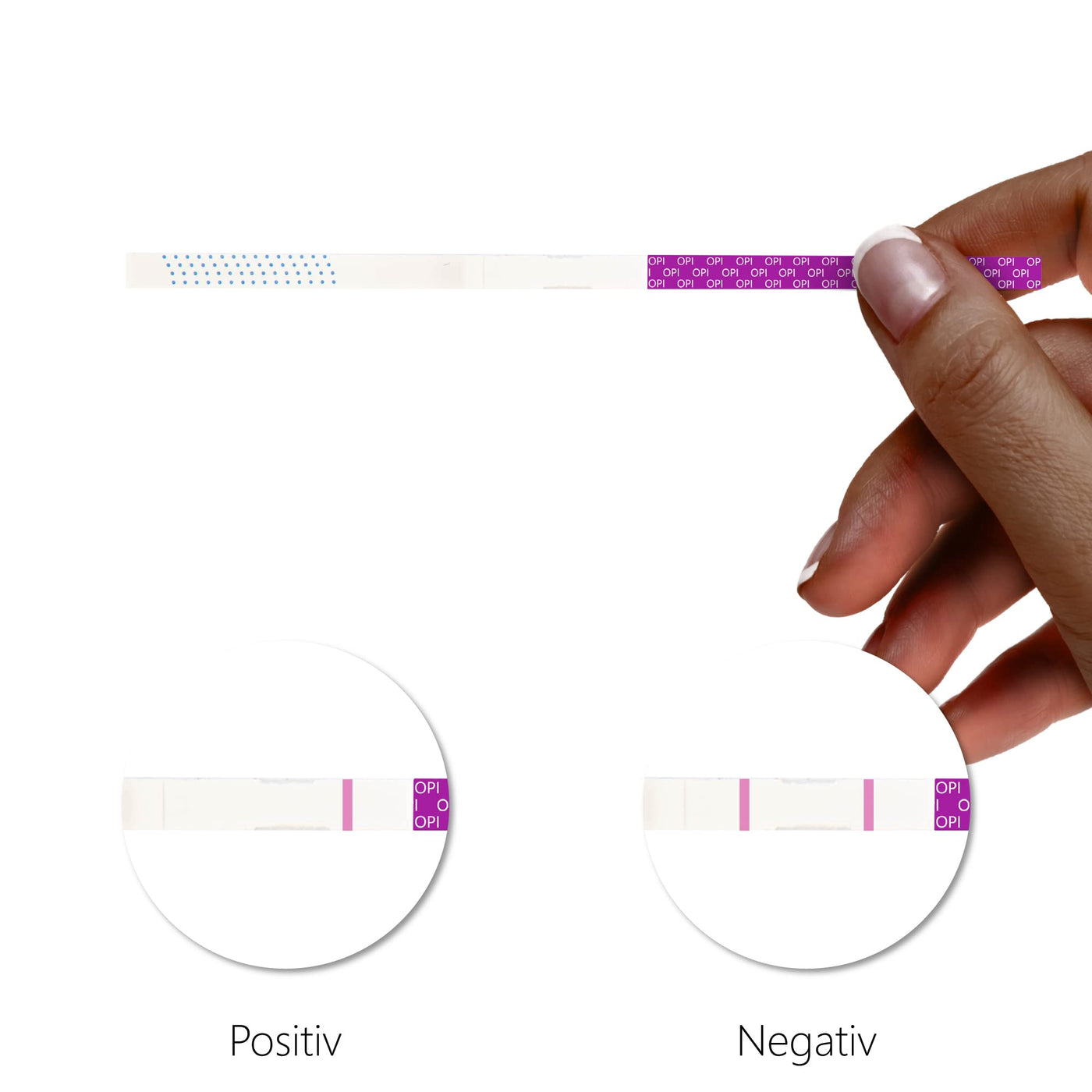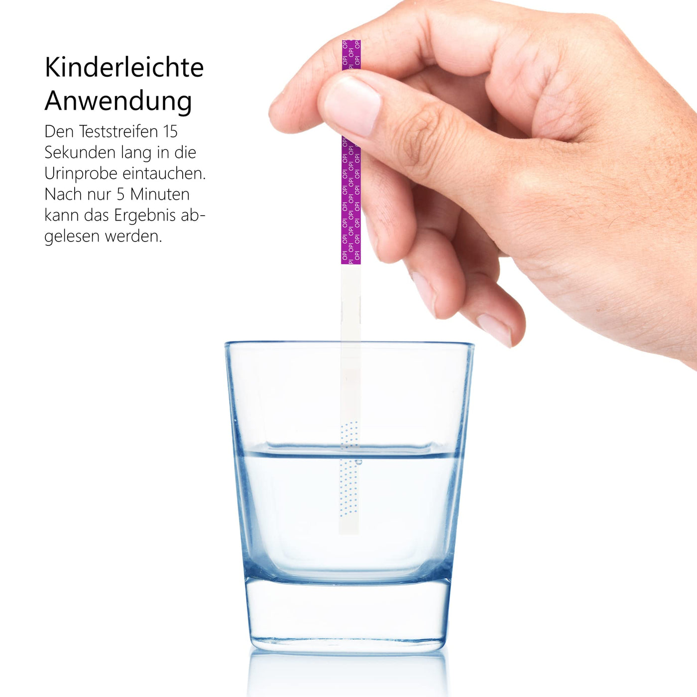 - HOW DOES THE TEST WORK? This test is approved for amateur and professional use. The application is therefore incomparably easy. (1) Remove a urine test strip from the sealed bag. Dip the tip of the test strip into the urine sample for 10-15 seconds. (2) Lay the strip flat on a non-absorbent surface and wait for 5 minutes. (3) Read the result: One line means positive (+), two lines mean negative (-).