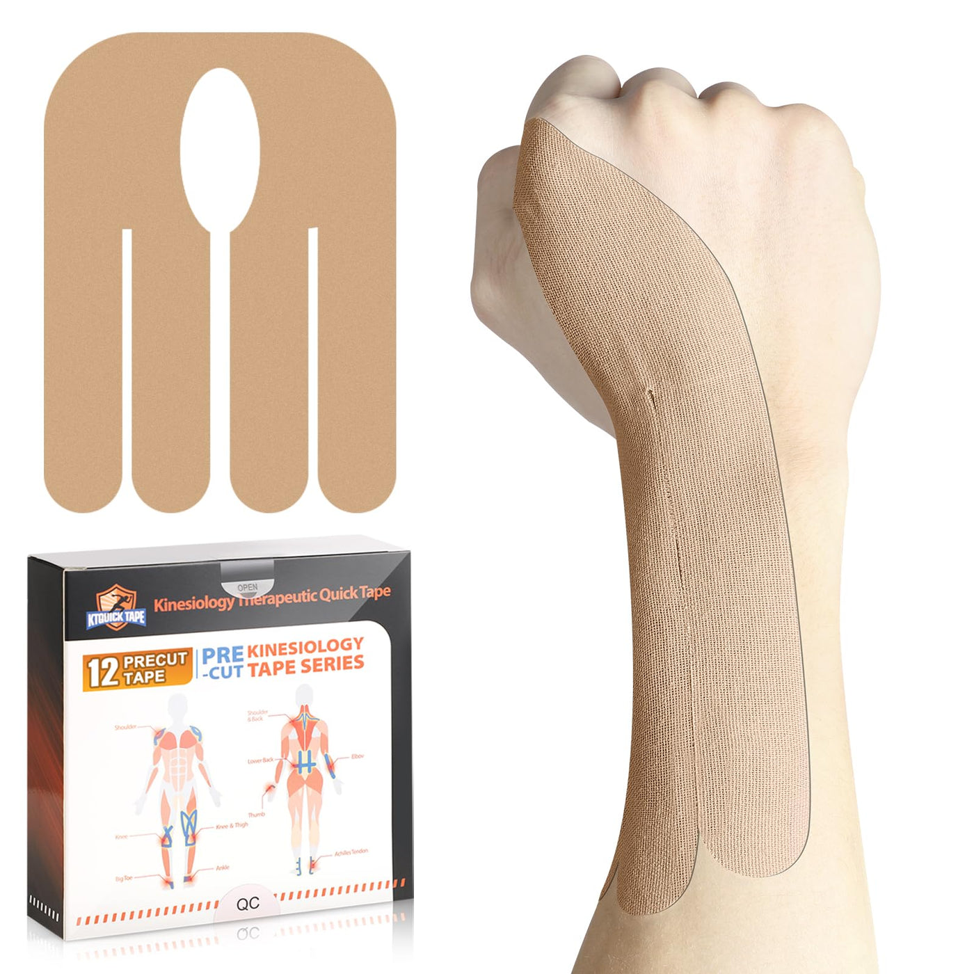 12 Count Kinesiology Tape for Thumb, Pre-Cut Waterproof KTquick Thumb Tape for Thumb Pain Relief Pre Cut, Original Cotton Athletic Tape, Durable Thumb Tape for Sports and Long-Lasting Support (Beige) Beige
