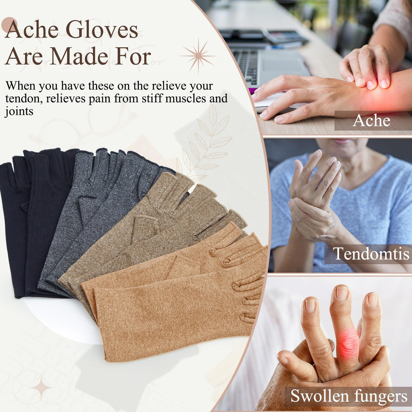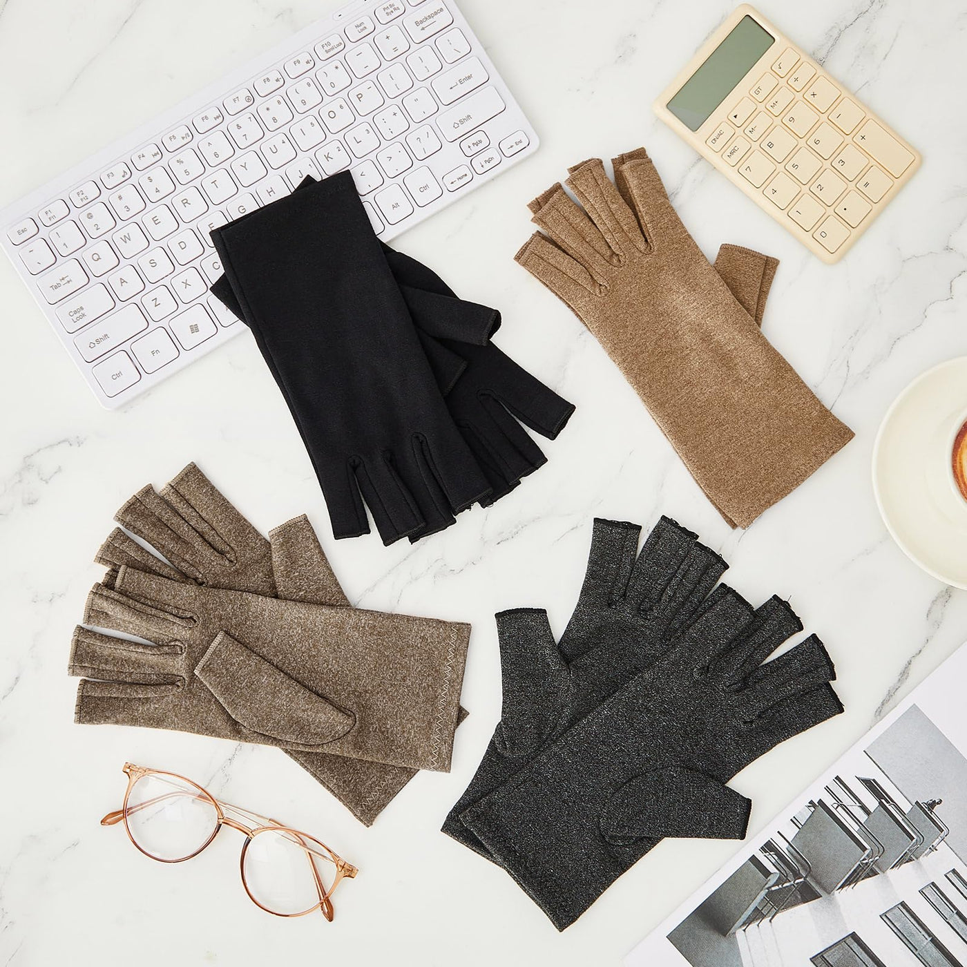Features: Add a touch of personality to your arthritis aids. Our hand compression gloves come in a range of appealing colors, including black, brown, gray, and yellow. Pick the color that suits your style. Not only are they practical and comfortable, but they also integrate seamlessly into your everyday wardrobe. Our arthritis gloves compression offer the balance between compression support and mobility. The open finger design and reliable stitching enhance comfort and longevity, ensuring they stand up to ongoing wear and tear. Equally ideal for both men and women, these gloves are also easy to clean, making them an efficient and practical solution for those seeking arthritis relief. Specifications: Material: 44% cotton, 44% polyester, 12% spandex Color: black, brown, gray, yellow Size: L Package includes: 12 Pairs arthritis gloves Notes: Manual measurement, please allow slight errors on size. The color may exist a slight difference due to different screen displays.