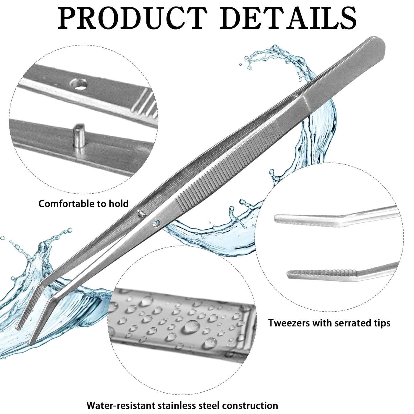 - Knurled Handle for Grip: Each of these stainless steel tweezers features a knurled handle that enhances grip and stability during use, reducing slippage and improving accuracy when working with small objects