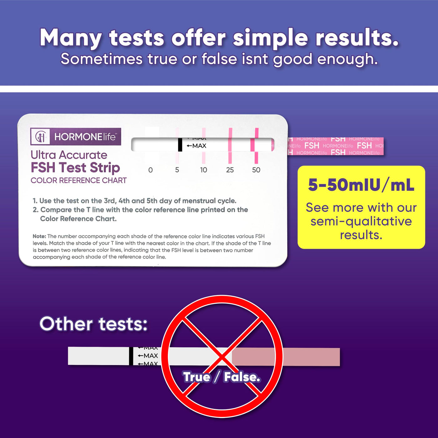 - Ultra-Accurate Semi-Quantitative FSH:Our FSH test strips measure 050 mIU/mL, providing more precise results than standard menopause test kits for women for better insight into hormone levels.