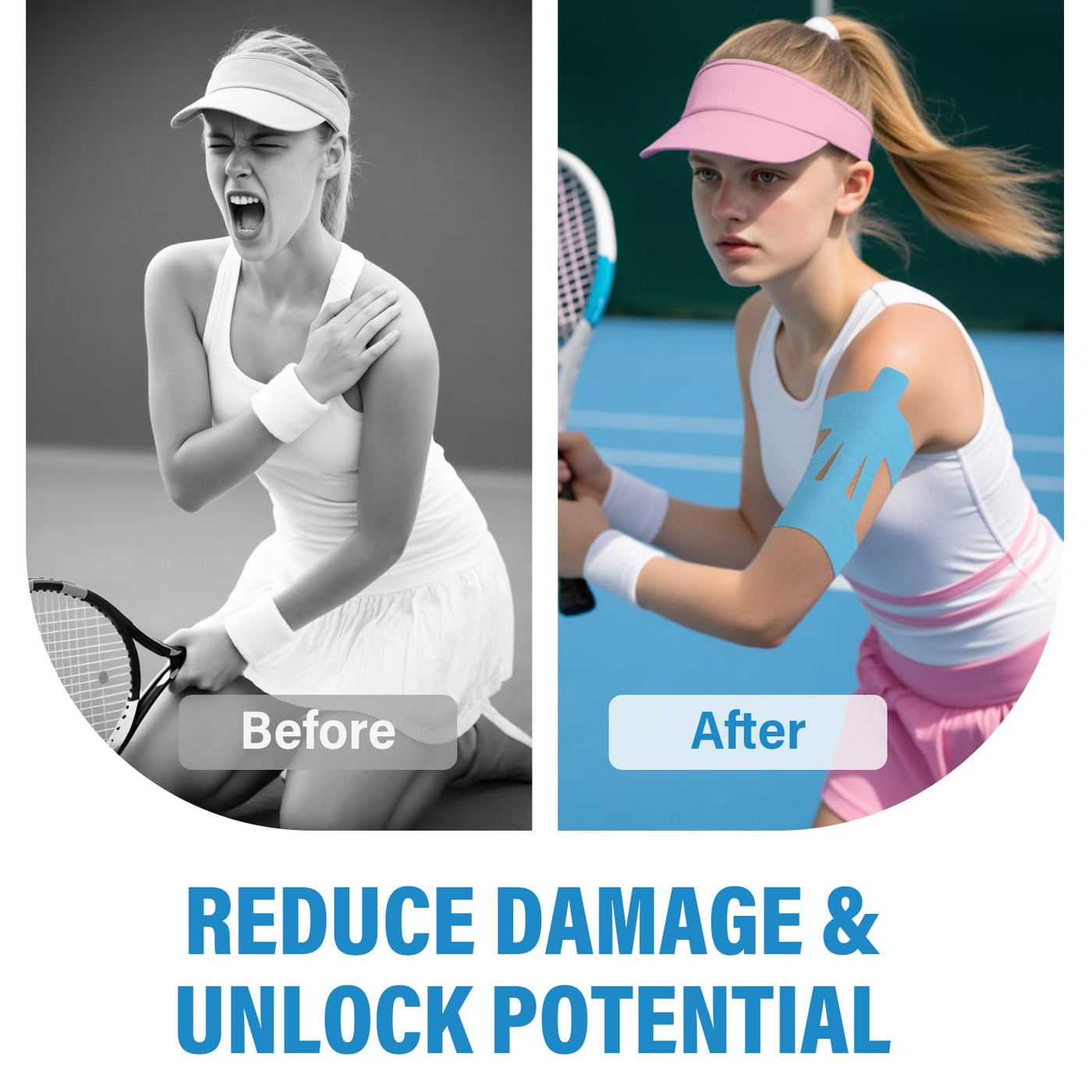 - [Stable Shoulder without Stiffness, Flexible to Win] The kinesiology tape that uses 3D mechanical support net to stabilize the shoulder joint can provide stable shoulder support, relieve pain without restricting movement, and be flexible in high dynamic sports such as swimming, weightlifting, and tennis.