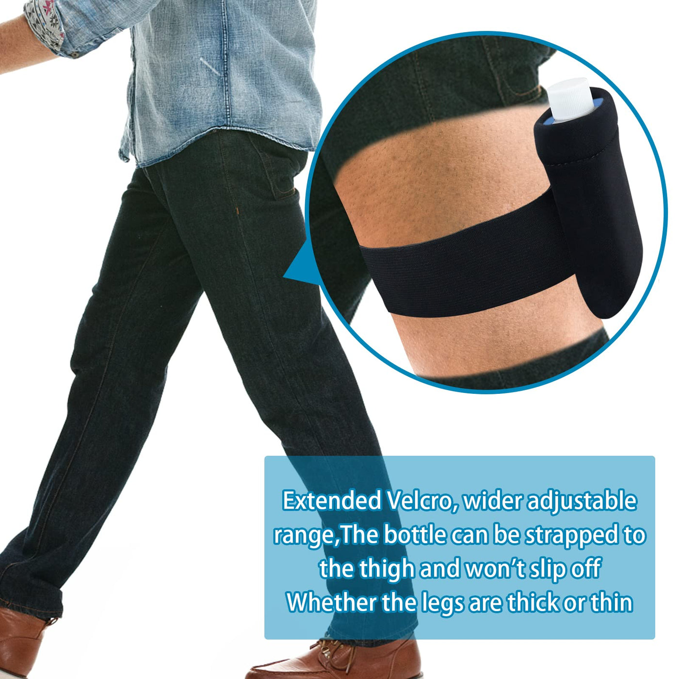 - QUALITY & PRACTICAL: The urine thermos bottle is made of high quality white plastic, which is strong. It will not crack, deform and leak after repeated use, and the sealing effect is good. The leg straps are made of high elastic straps for a smooth fit and a comfortable fit. Compatible with most leg shapes. The neoprene belt is smooth and elastic, which can wrap the urine bottle well without shaking, and has a good thermal insulation effect