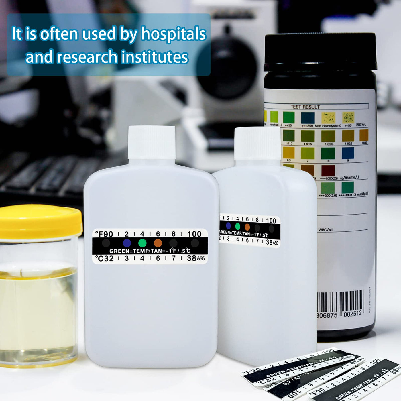 - EASY TO OPERATE: This urine test kit is ideal for measuring urine, stick the test strip on the side of the bottle, pour the urine into it, and it will show the temperature immediately. The test strips are color coded according to temperature for easy reading. Save time and effort