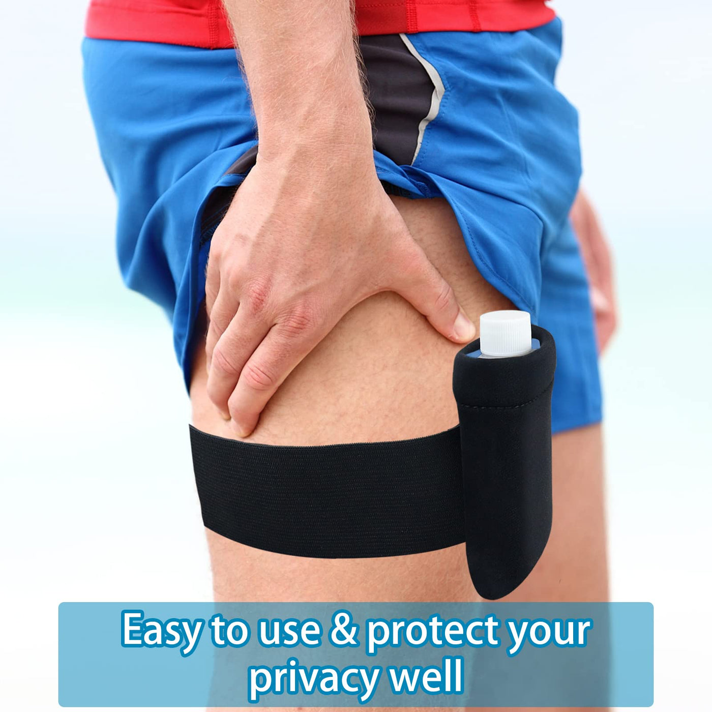 - THE RIGHT SIZE IS EASY TO CARRY: The size of the urine bottle is 2.5*1.1*4.5 inches, which is smaller than the mobile phone. The leg straps are 19.3 inches long and stretch to fit a variety of leg shapes. Great for carrying around