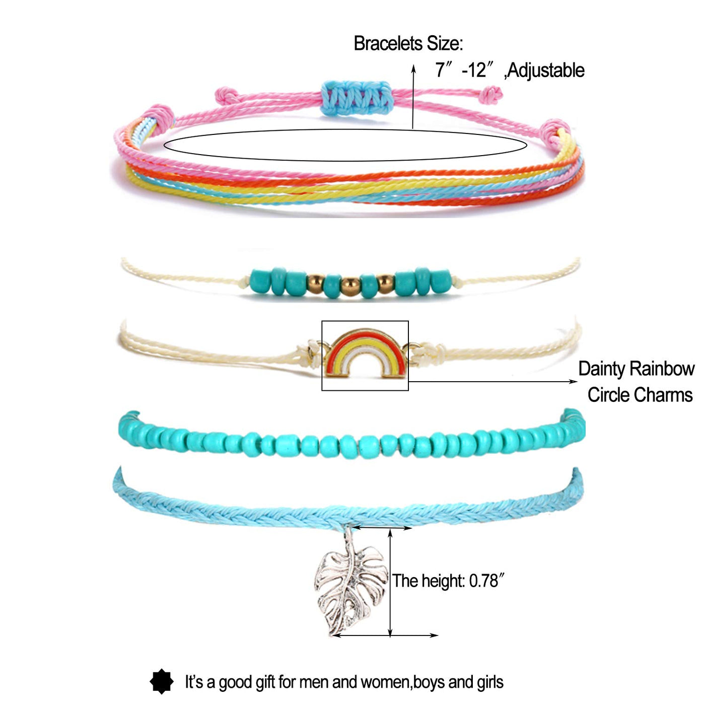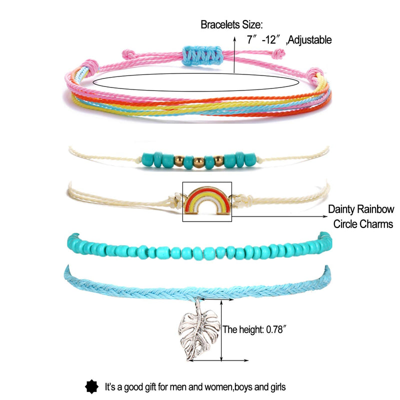 - 4 Set String Anklet Bracelets:Wave Bracelets length is 7"-13",Waterproof,Handmade,Adjustable.Very Suit for Summer Beach.Wearing braided rope bracelets on the seaside,it will attract every people eyes on you.