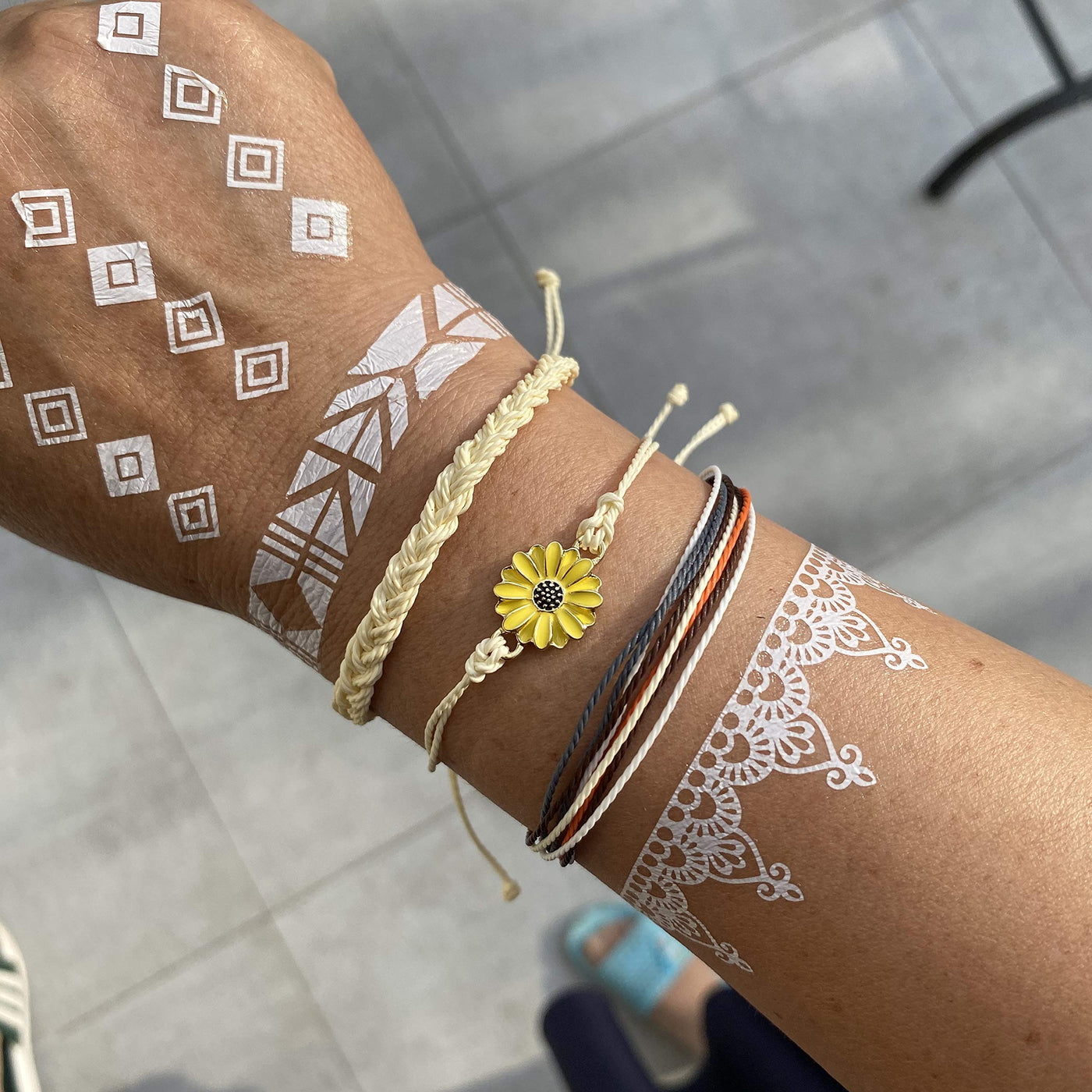 Dainty Elements meets every you need! Many Delicate Factors,such as maple ,wave ,rainbow,mountain,sunflower,bead,compass,Give you many choice for match.Everyone is a unique person.Hope you can match only one for yourself. Material & Size Wave Bracelets length is 7"-13",Waterproof,Handmade,Adjustable.Very Suit for Summer Beach.Wearing braided rope bracelets on the seaside,it will attract every people eyes on you. Warm Adjustable Design Cute Braided Bracelets for Girls:slip knot, easily put on and take off, also conveniently adjust the size to fit your wrist,Nice Gifts for your best friend. Read more Beige Sunflower String Bracelets Blue Sunflower Circle Rope String Bracelets Maple Rainbow Boho Bead Braided Bracelets Read more Grey Sunflower Circle Beads Style Wine Sunflower Circle Beads Style Bright Yellow Sunflower Circle Beads Style Read more