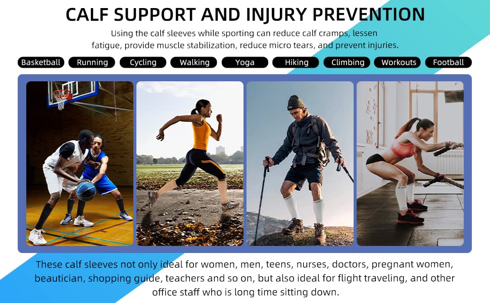 - COMFORTABLE TO WEAR:Calf compression sleeve women and men with the lightest, durable, breathable fabric, 77% nylon + 23% spandex, soft and comfortable, breathable, deodorant and anti-static fabrics to prevent the growth of, leg sleeves for men absorbing moisture/sweto stick to the foot, perfect for a wide range of physical activities, pump covers gym women, including: running, hiking, cycling, football, rugby, tennis, basketball, triathlons, weight lifting and general fitness.