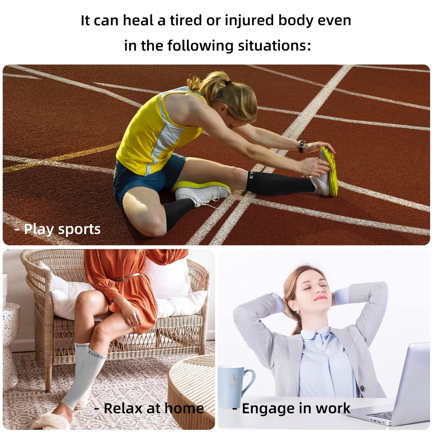 - TAKE CARE OF YOU:compression socks women wide calf with the latest research and development,care of your leg health, support calf and promote increased bloodflow, compression sleeves for legs women resulting in increased oxygen flow to the leg muscles, helping to prevent spasms and reduce fatigue. Whether you have calf pain, leg spasms, swelling or edema, tibial splints, POTS or varicose veins/spider veins,medias de compresion para mujer allow you to train harder, recover faster, feel stronger