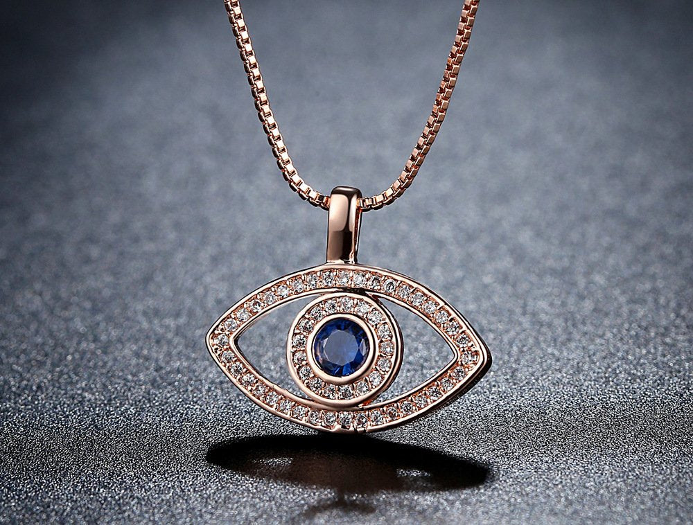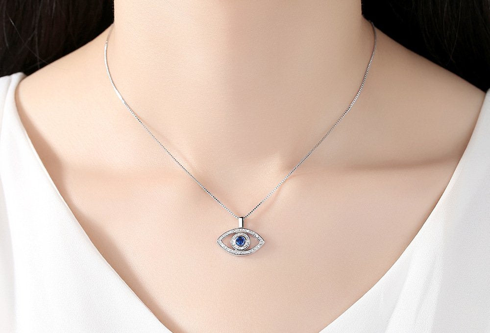 - Fashion Jewelry;18K Yellow Gold Plated & White Gold Plated CZ Evil Eye Pendent necklace with Mini Cubic Zirconia Cobalt Blue Glass Center Stone For Women Teen Girls.Pendent Dimensions: 7mm x 17mm.