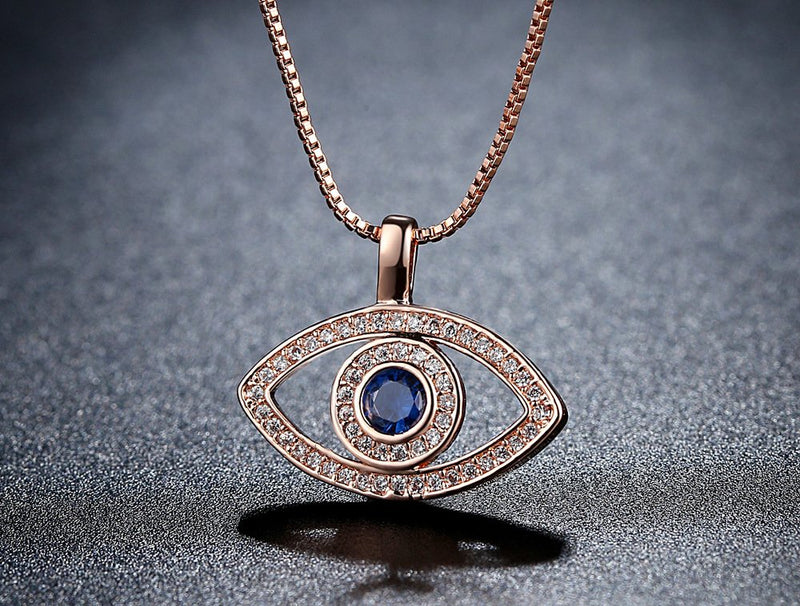 Fashion Jewelry;Gold Plated & Silver Plated Evil Eye Pendent necklace with Mini Cubic Zirconia Cobalt Blue Glass Center Stone For Women Teen Girls .Pendent Dimensions: 7mm x 17mm.Material: environmental friendly copper alloy, product’s surface is rhodium-plated or gold-plated.Cadmium Free and Nickel Free, No Harm to Human Body. The auxiliary material is high-quality AAA Cubic Zirconia and other gemstones. These necklace look and sparkle like genuine diamonds sure.Wearing A Hamsa Hand Amulet Jewellery Always Watching You Out From Danger, Provides Protection Against Evil Forces Also Provides Blessing, Fortune, Peace, Good Health, Wealth and Happiness!For any cocktail or daily wear, perfect idea gift for wife, daughters, friends, lovers for the valentine's day, mother's day, anniversary, engagement or christmas.Free jewelry brand box, making it easy for you to surprise your special someone or keep it safety.Ideal gift to your loved one.100% SATISFACTION GUARANTEED - Your satisfaction is our eternal goal. We try our best to make sure every piece of our products arrives in best quality and condition.
