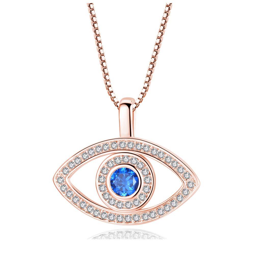 18K Yellow Gold Plated & White Gold Plated CZ Evil Eye Pendent necklace with Mini Cubic Zirconia Cobalt Blue Glass Center Stone For Women Teen Girls Hollowed Rose Gold