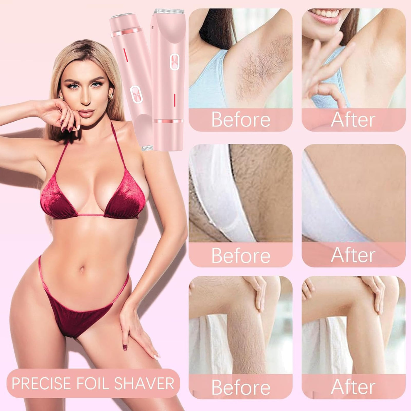 - Dual Head Hair Trimmer for Women: Womens electric glow shaver features a 2-in-1 body shaver and facial shaver, providing versatile grooming with a versatile tool. No need for blade replacementsthis electric lady bikini shaver allows for easy and efficient touch-ups anytime, anywhere