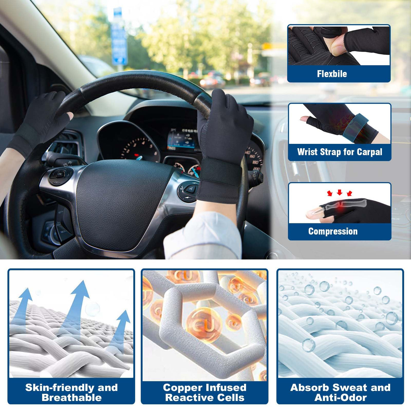 - Relief of All Types of Hand Pain - Copper Arthritis Compression Gloves are designed to help you get the support you need for all day and all night comfort. Commonly used by people suffering pain in the hands, Arthritis, Carpal Tunnel, Tendonitis, stiff or sore muscles, tendons and joints, wrists and more! Extra wrist strap provides support for wrists. Get more relief!