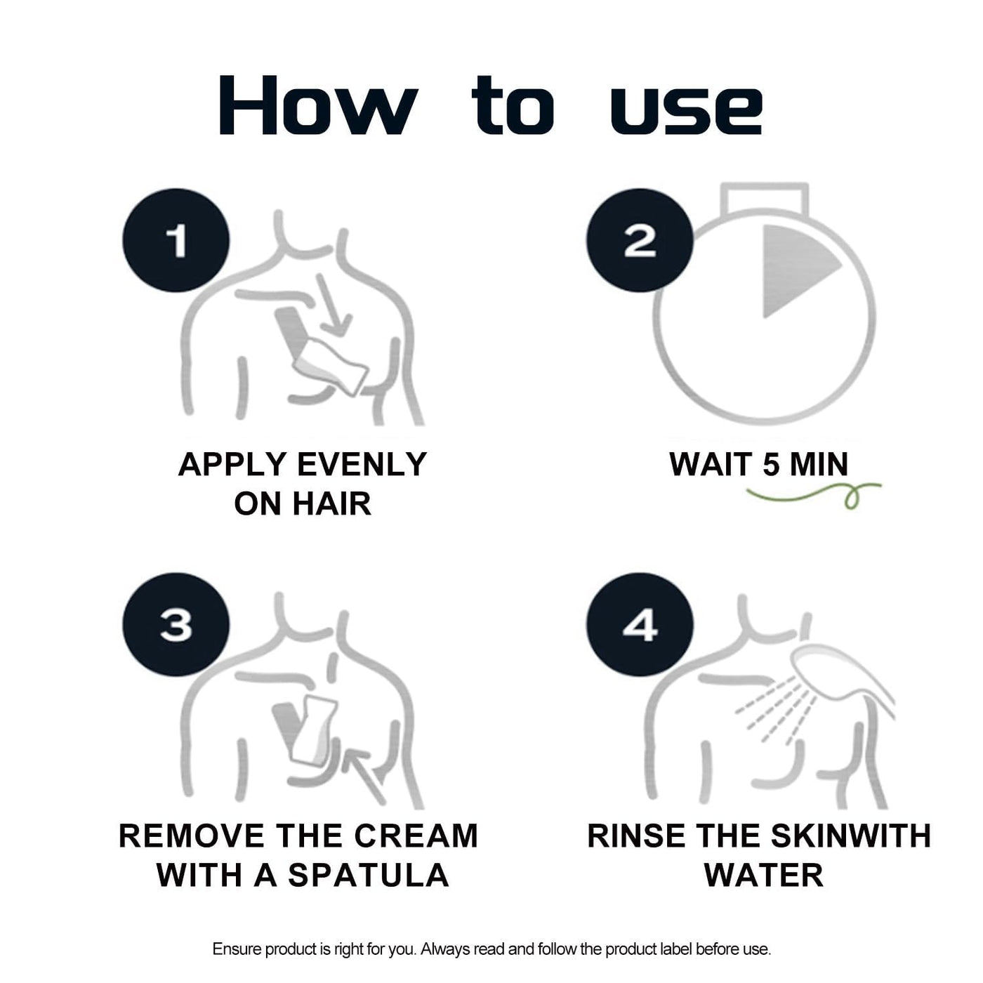 - How to ApplySimply spread a generous layer of the intimate hair removal cream over the genital area, allow it to work for 510 minutes (10 minutes being the limit), then use a damp cloth in the shower to wipe off the cream and unwanted hair.