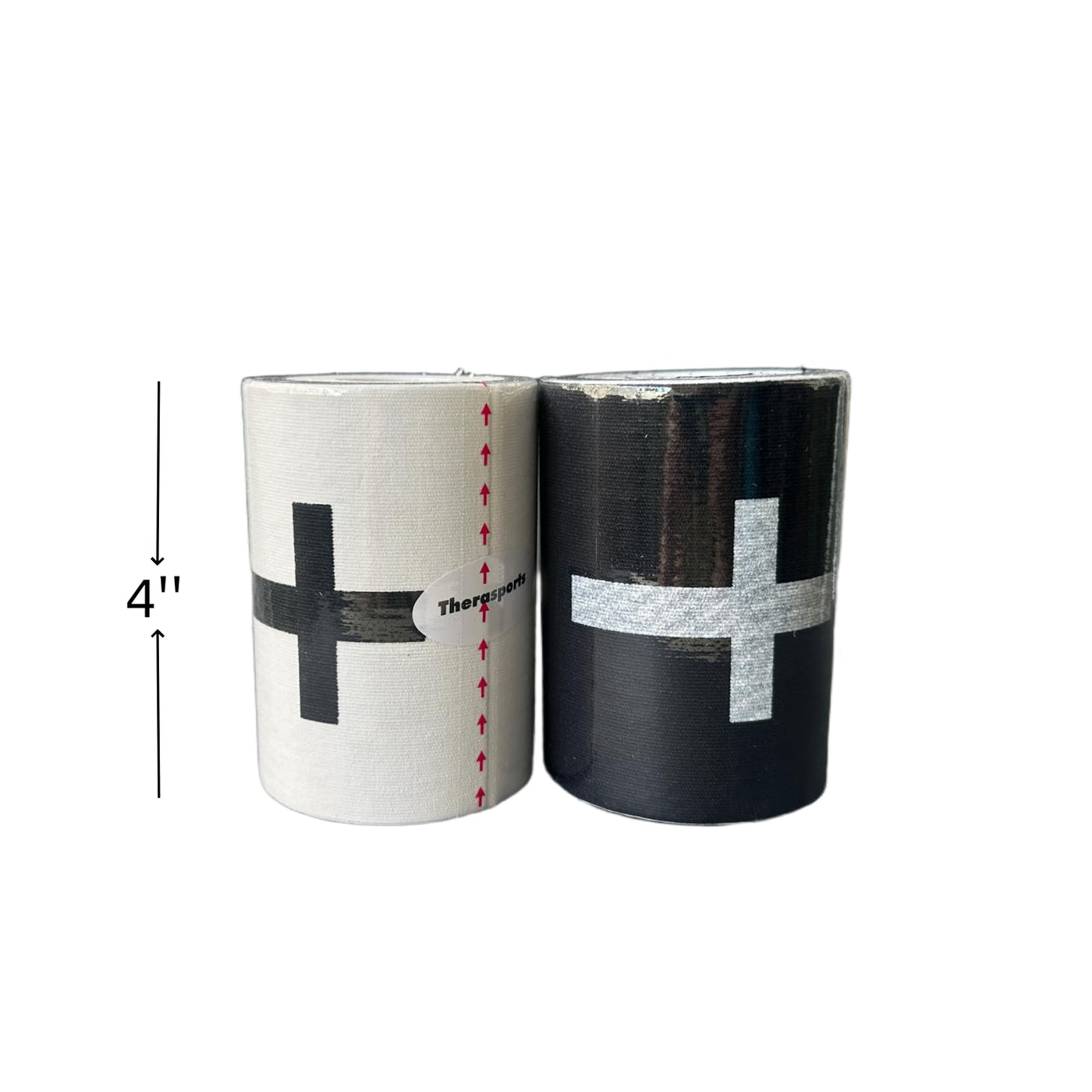 2 Rolls Faith Cross Turf Tape Football - Extra Wide Christian Athletic Turf Tape - Ultra Sticky & Latex Free, Protects from Turf Burn, Waterproof & Flexible (White & Black, 4 inch) White & Black