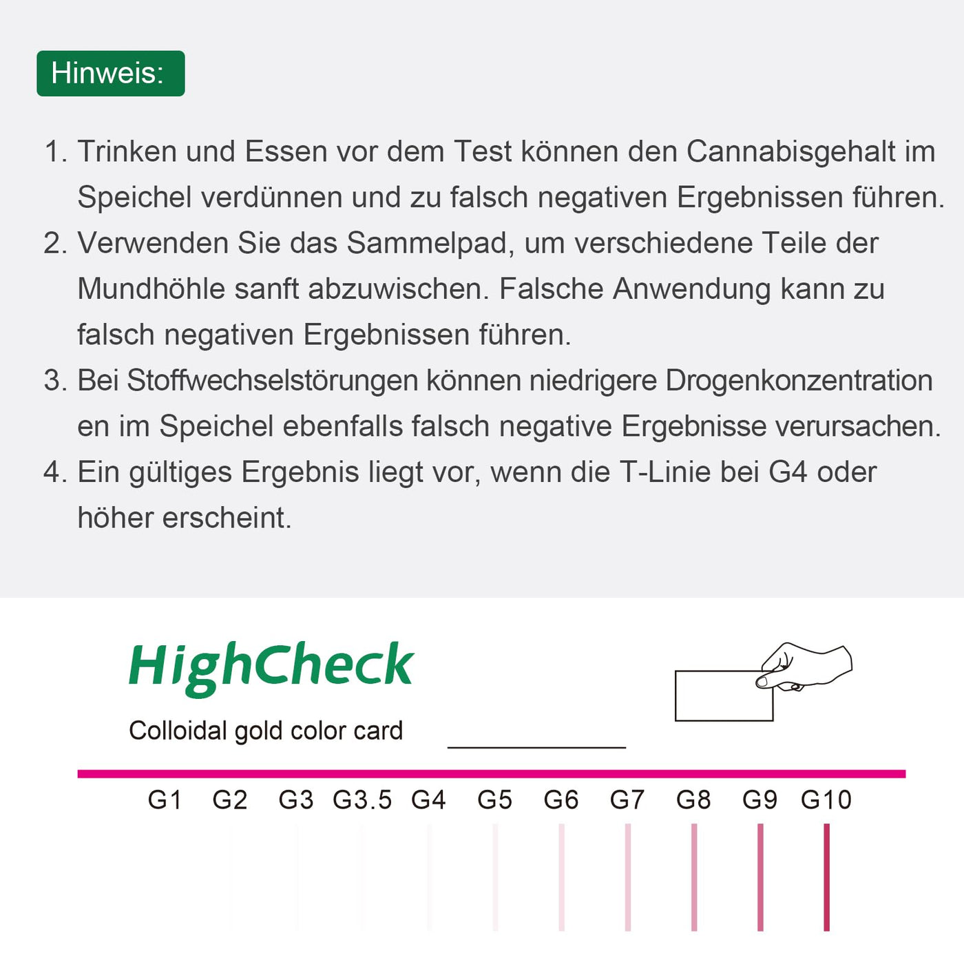 - Highly sensitive saliva drug testThe HighCheck rapid drug test saliva uses highly sensitive technology with a sensitivity of 3.5ng/ml to quickly identify certain ingredients in saliva and provide you with reliable test results.