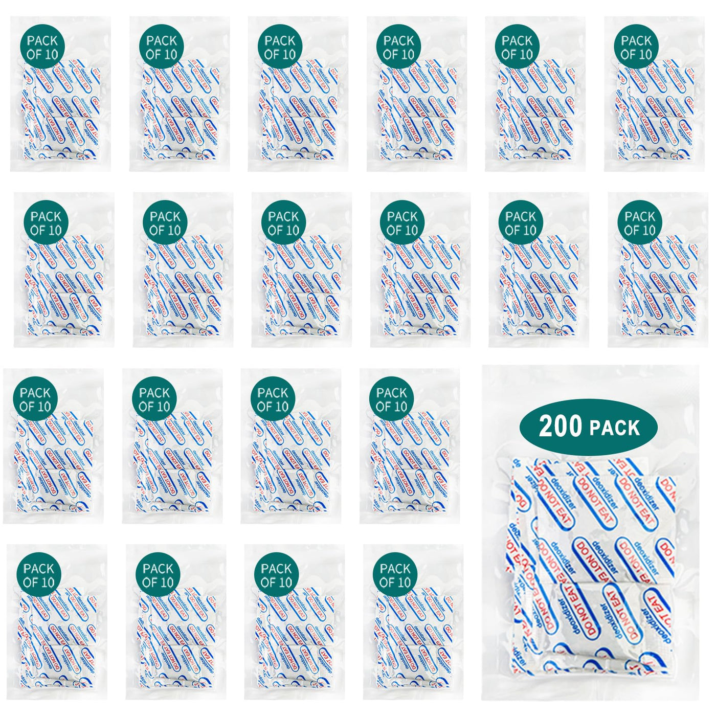 200 Packs 300CC Oxygen Absorbers for Food Storage, Food Grade Oxygen Absorbers, O2 Absorbers Food Grade, Oxygen Packets for Food Storage (10 Packs x 1 Vacuum Bag), Air Absorbers Packets