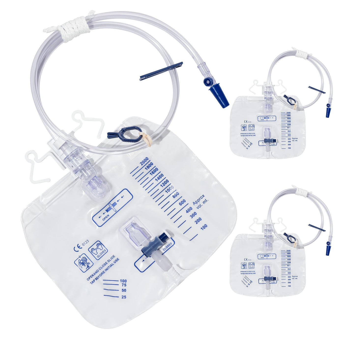 2000mL Catheter Bags for Men and Women 3 Pack Professional Urinary Drainage Bags with Enhanced Anti-Reflux Drip Chamber, 48” Thickened Drainage Tube, Adjustable Clips & Hanging Hook 3-pack 2000 mL