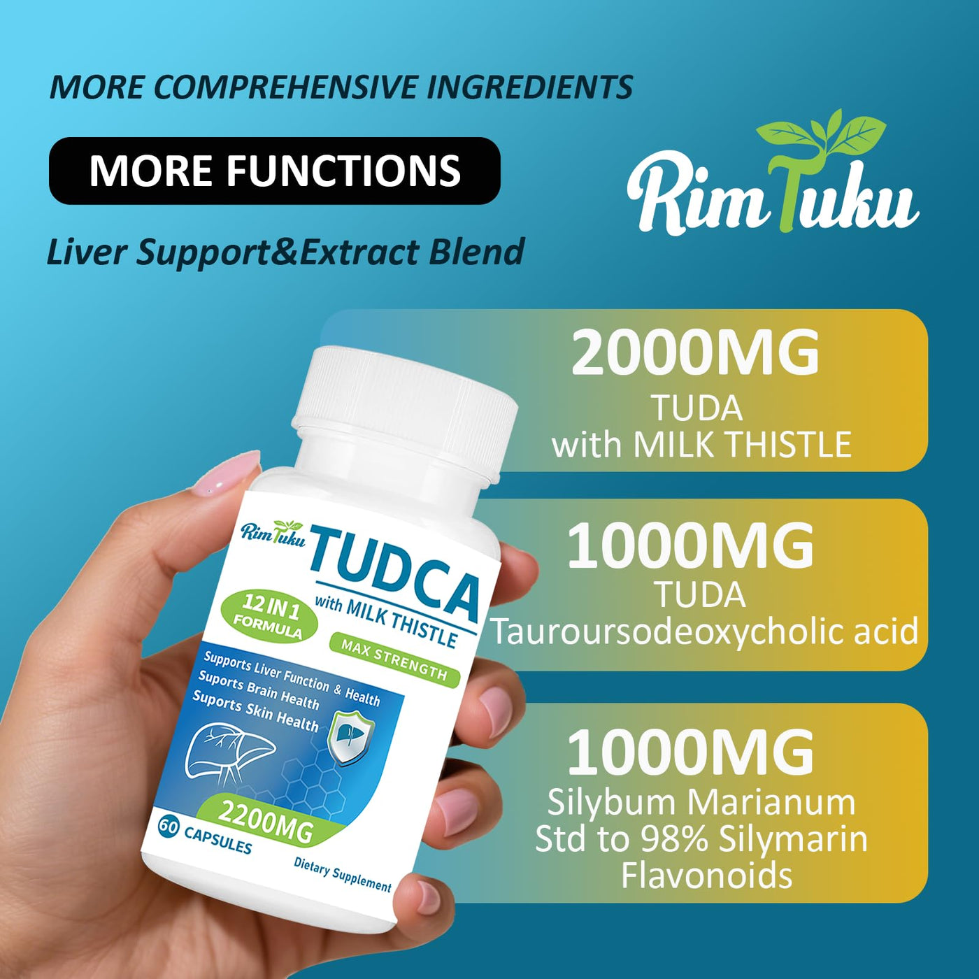 2200MG TUDCA Supplement with Milk Thistle 12-in-1 Formula Liver Support, Bile Salts Supplement for Liver Cleanse & Detox, Bile Flow & Gallbladder Support 60 Capsules