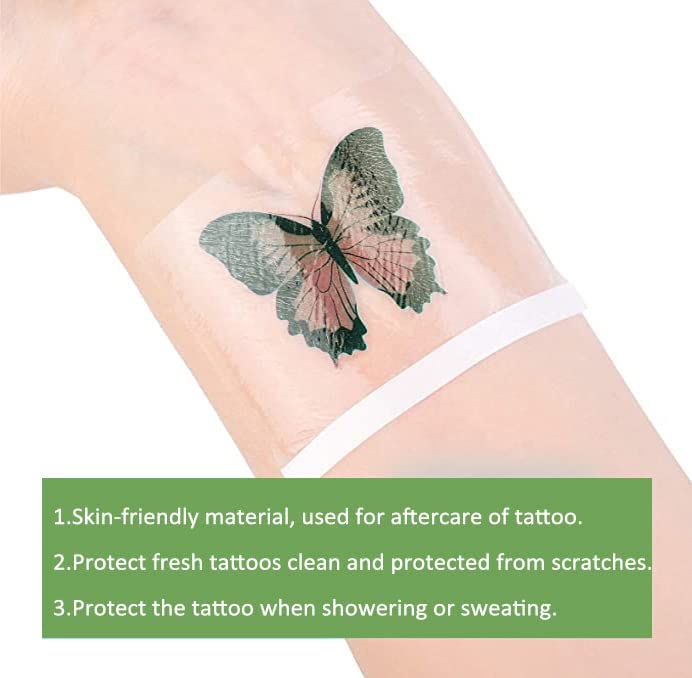 - FASTER HEALING TIME & ARTIST PREFERED: The Tattoo Aftercare Bandage can helps lock in the color and reduces scabbing when wash or moisturize your tattoo. 24hours to increase oxygen absorption, quickly form a protective film.Using Tattoo Bandage can cut healing time in half for most tattoos,making brights brighter and darks darker.