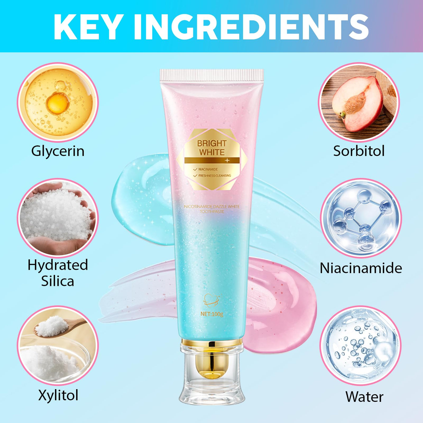- Whiten Without Sensitivity: Our niacinamide whitening toothpaste gently lifts years of yellowing from food, drinks, or agerestoring a brighter smile without any harsh chemicals or irritation.