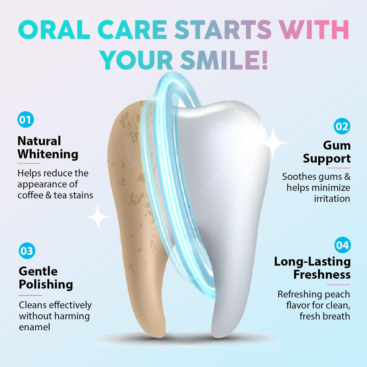- Uplifting Flavour, Satisfying Clean: With each brush, enjoy a juicy mint-peach experience thats as invigorating as it is effectivekeeping your breath fresh and smile brilliant all day long.