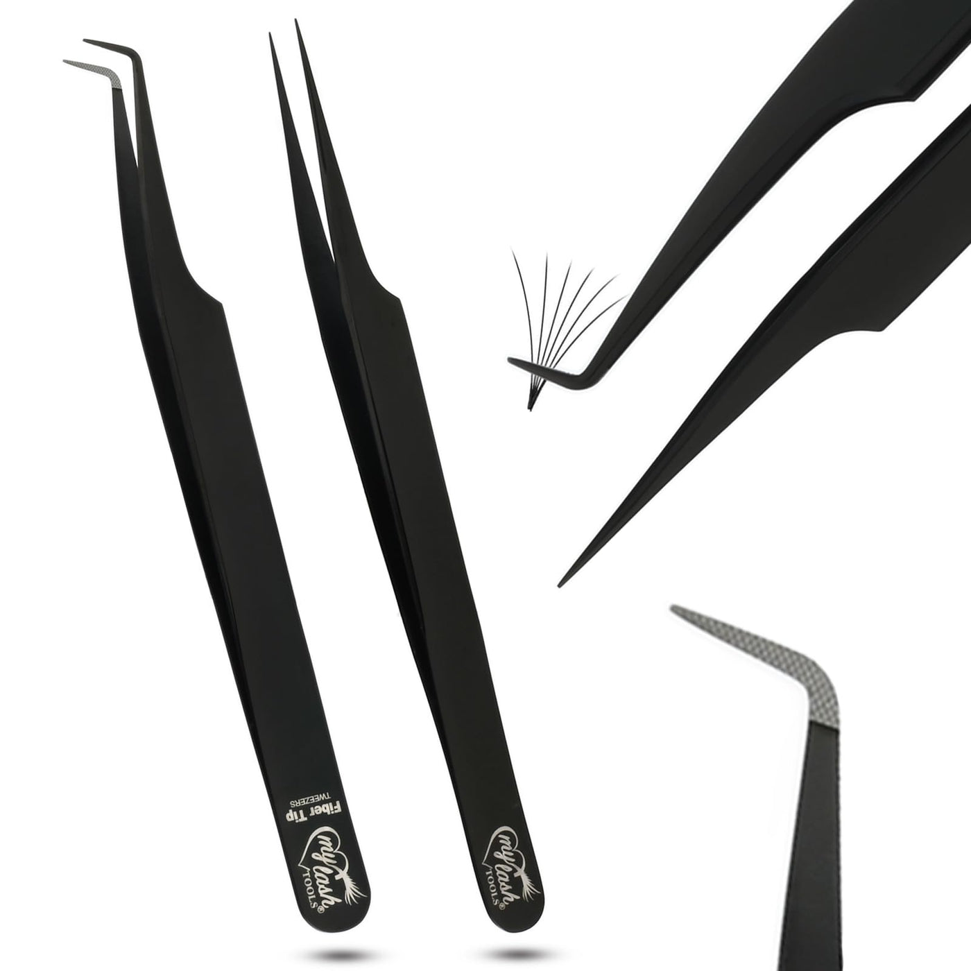 2Pcs Fiber Tip Lash Tweezers for Eyelash Extensions and Straight Isolation Tweezer Set – Professional Precision Fan Making, Mega Volume Boot Lashing, Classic & Mink Eyelashes, Black 2PCS SET Black Tweezers Set/Mlt07-3)