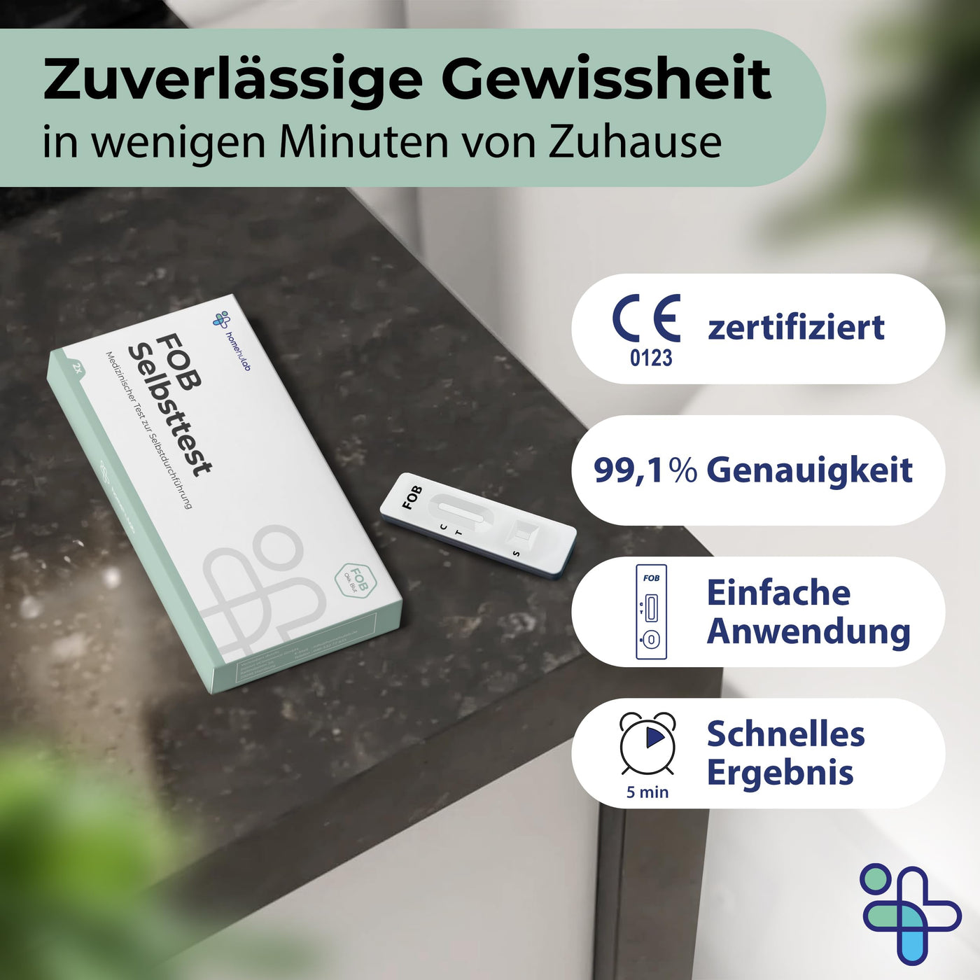 - Quick results for at home Our FOB rapid test delivers a clear result after just 5 minutes. Without waiting times, without uncertainties, without a laboratory, directly for use at home.
