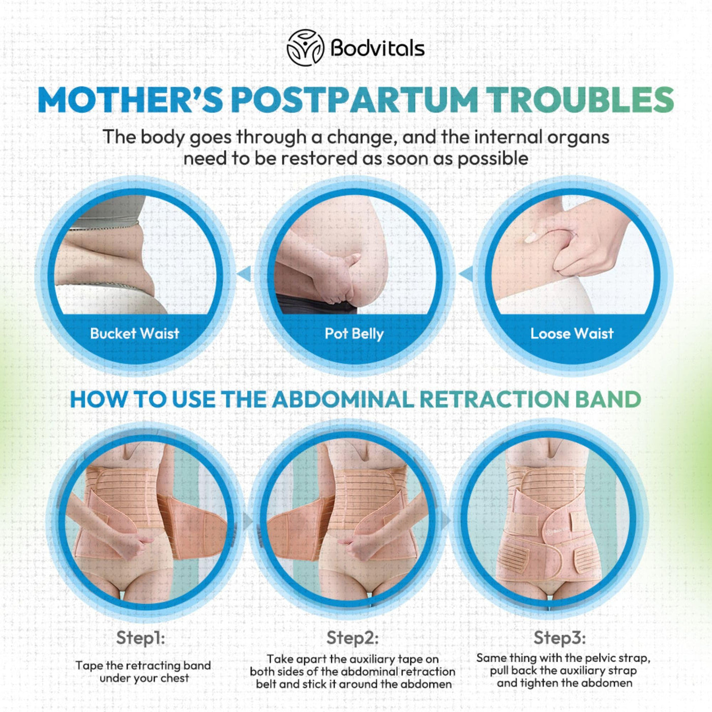 - Three-piece Postpartum Belly Wrap: Consists of separate components (abdominal belt, waist belt, and pelvis belt, belly band postpartum belt). Can be worn together or individually to target specific areas. Postpartum belly wrap are specially designed for postpartum moms, to support your tummy and strengthen your core muscles after childbirth. C-section recovery belt can help you flatten the tummy, restore uterus to its original size sooner. Postpartum belt recommended by medical doctors.