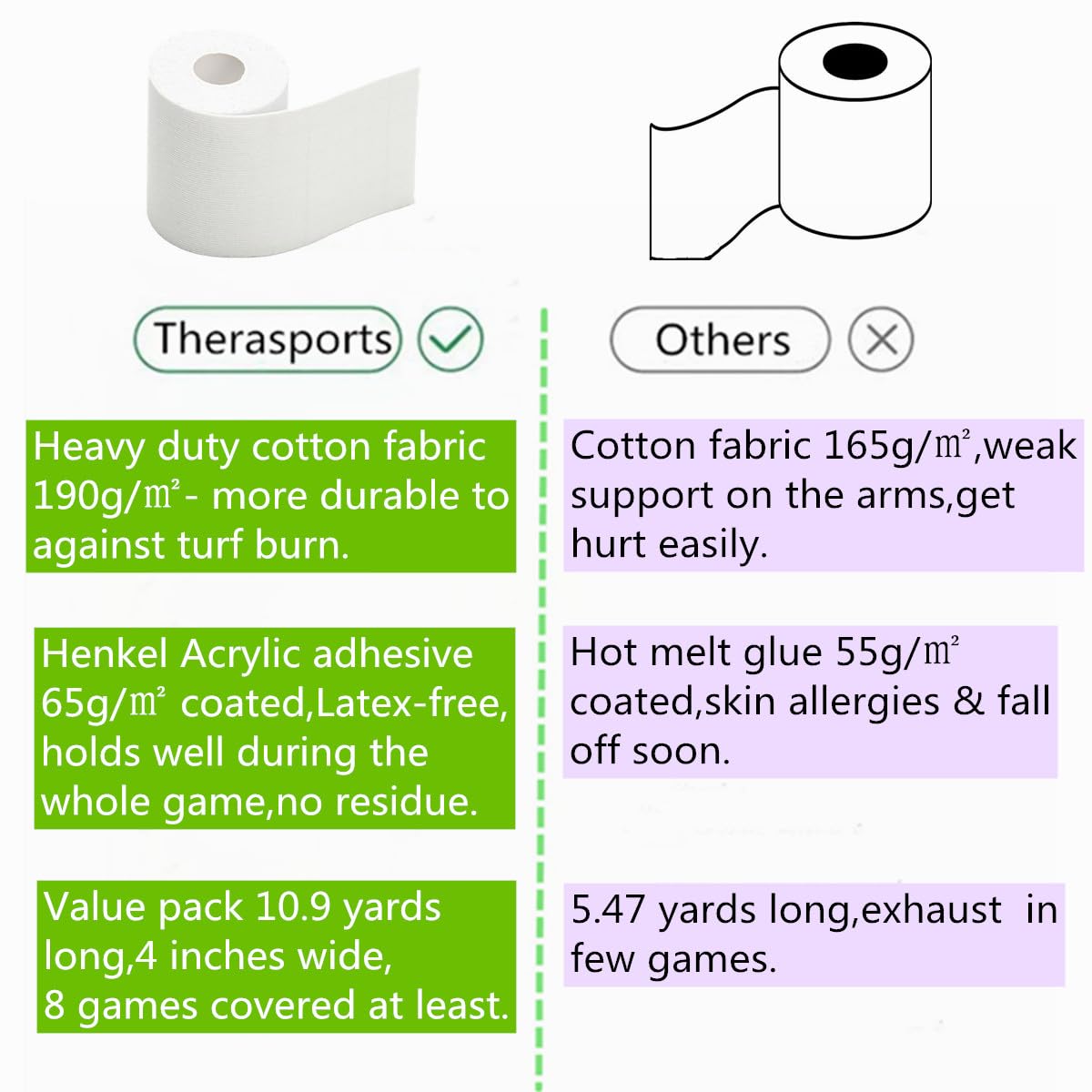Therasports 3 Inches X 10.9 Yards Football Turf Tape, Narrower in Width, Designed for Little Boys, Son, Daughter, Grandson, Brother, Ultra Sticky, Protects from Turf Burn, Flexible and Breathable, White