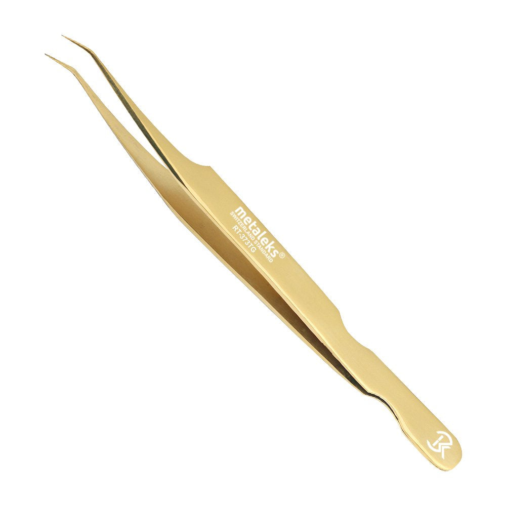 3Pcs Japanese Stainless Steel Tweezers for Eyelash Extension in Golden Titanium Coated with Golden Glitter Magnetic Kit