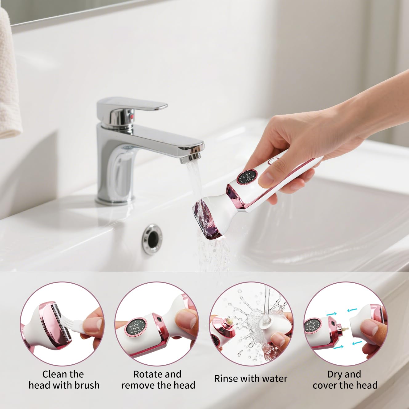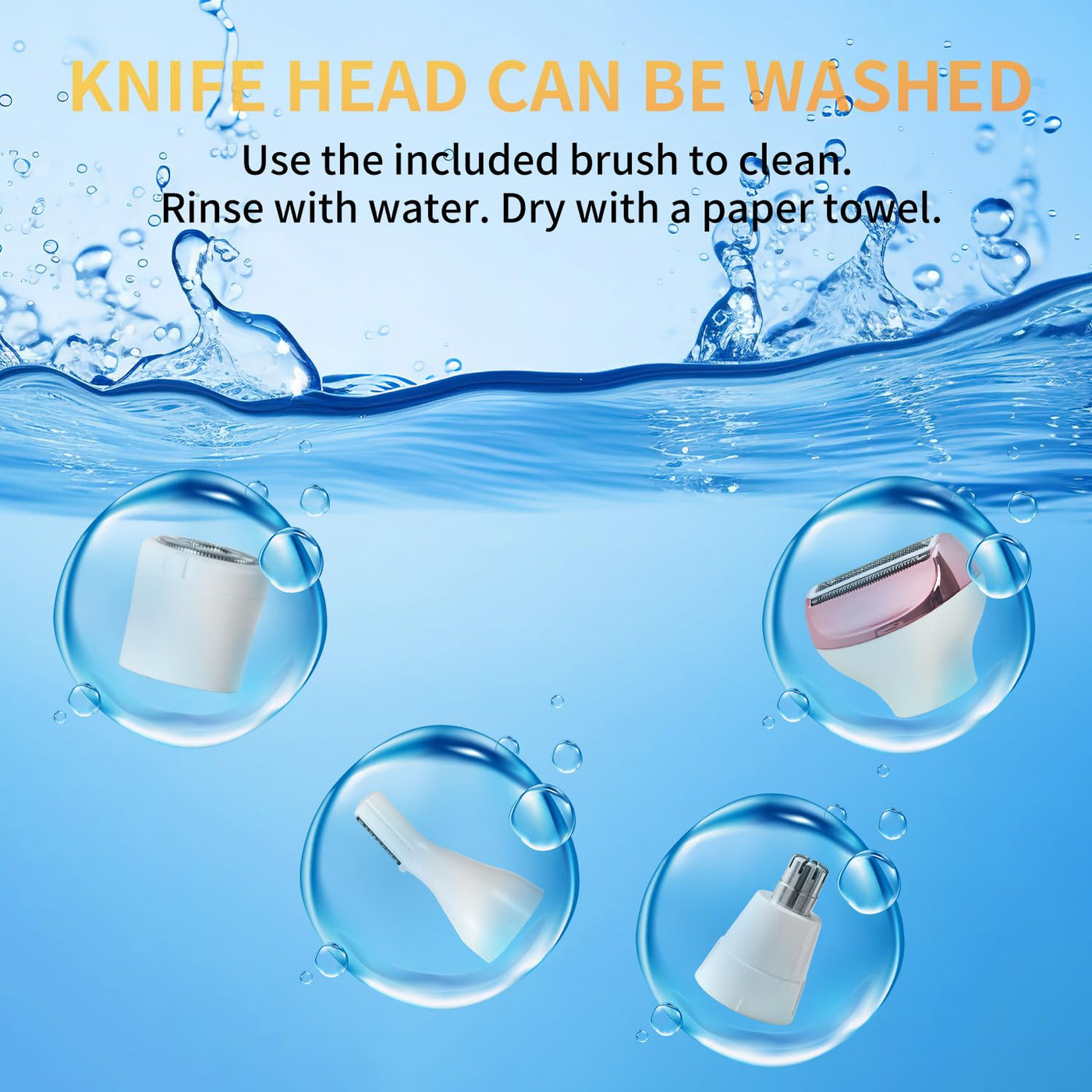 - IPX6 Waterproof & Wet/Dry UseAll 4 replaceable heads are removable and rinseable. Clean residual hair gently with the included brush. The IPX6-rated waterproof design enables convenient multi-area trimming even while showering, saving time on busy days.