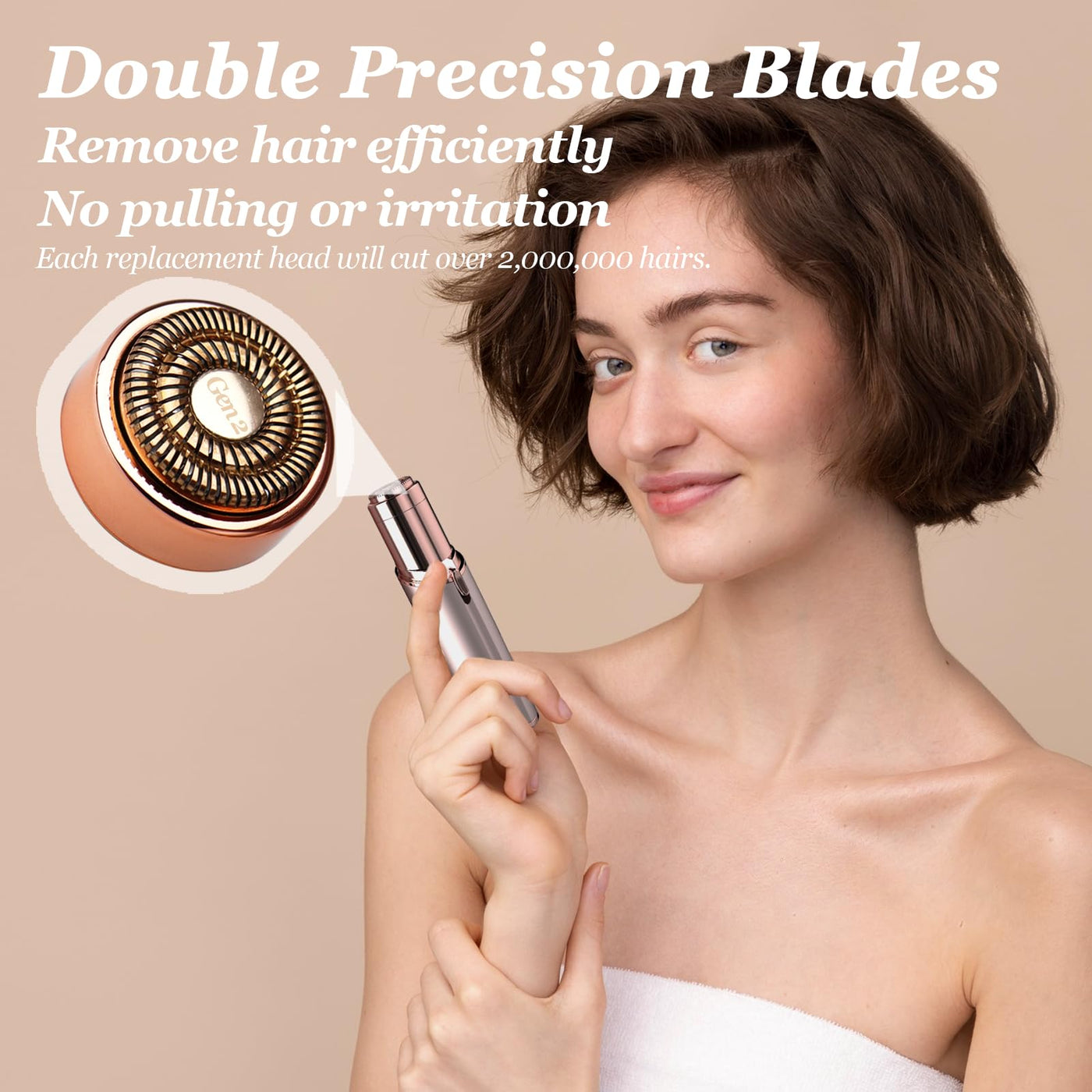 - DOUBLE PRECISION BLADES - Features twin micro-surgical-grade blades for 2x hair removal efficiency, effortlessly removing even peach fuzz and fine hairs without pulling or irritation for silky-smooth skin.