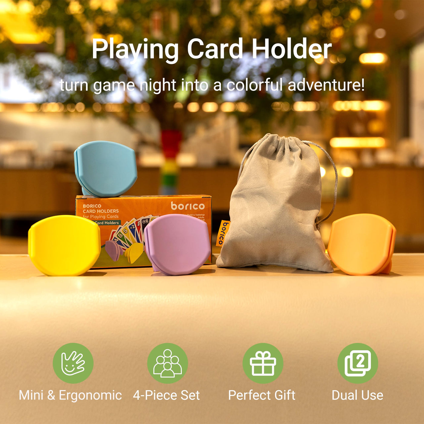 - 4 Piece Set for Multiplayer Fun: Includes 4 colorful card holders and a convenient storage bag, perfect for family game nights or playdates with friends. Everyone can join the fun